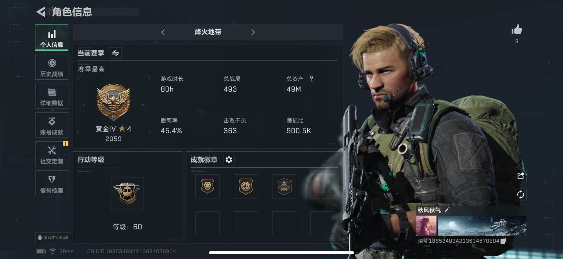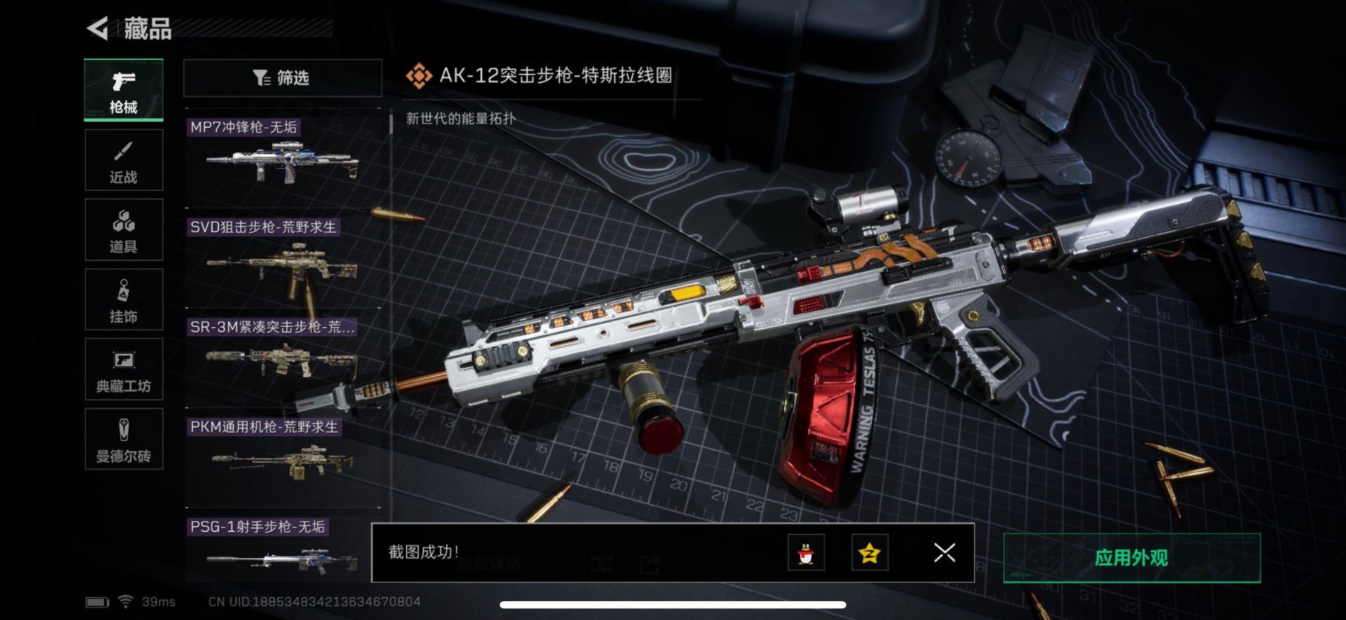 [11412706]总资产:49M 8传说枪械 哈夫币:16.340K 高级安全箱(9.17到期) 可二次 可修改实名 烽火地带段位:黄金 全面战场段位:无段位 传说武器皮肤:AK-12突击步枪-特斯拉线圈,SR-3M紧凑突击步枪-特斯拉线圈,UZI冲锋枪-特斯拉线圈,勇士冲锋枪-能天使-午夜邮差,Vector冲锋枪-能天使-午夜邮差,复合弓-黑-天际线,M4A1突击步枪-阿米娅,725双管霰弹枪-送葬人-无题密令 史诗武器皮肤:AUG突击步枪-蝮蛇,PKM通用机枪-荒野求生,SR-3M紧凑突击步枪-荒野求生,SV-98狙击步枪-林中猎手,SVD狙击步枪-荒野求生,SCAR-H战斗步枪-囚徒,MP7冲锋枪-无垢,PSG-1射手步枪-无垢
