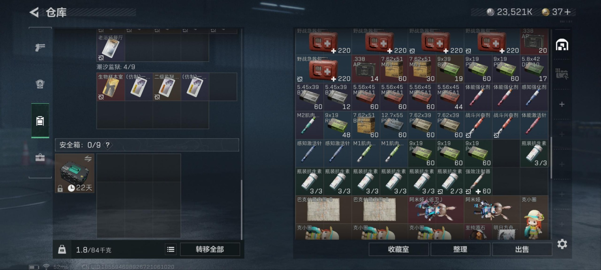 [11426646]总资产:102M 1干员外观 8传说枪械 哈夫币:23.521K 顶级安全箱(3×3)9.15号到期 可二次 可修改实名 优质装备:顶级安全箱(3x3) 烽火地带段位:铂金 全面战场段位:校官 传说武器皮肤:M4A1突击步枪-阿米娅,CAR-15突击步枪-阿米娅,复合弓-黑-天际线,AWM狙击步枪-捞点薯条,腾龙突击步枪-捞点薯条,93R-捞点薯条,勇士冲锋枪-能天使-午夜邮差,725双管霰弹枪-送葬人-无题密令 史诗武器皮肤:M16A4突击步枪-竞赛选手,PKM通用机枪-荒野求生,勇士冲锋枪-深海恐惧,SR-3M紧凑突击步枪-荒野求生,SV-98狙击步枪-林中猎手,SVD狙击步枪-荒野求生,AS Val突击步枪-典狱官,M250通用机枪-囚徒,SV-98狙击步枪-囚徒,SCAR-H战斗步枪-囚徒,腾龙突击步枪-无垢,MP7冲锋枪-无垢,PSG-1射手步枪-无垢,Vector冲锋枪-阿萨拉文明,S12K霰弹枪-曙光 干员外观:蜂医-送葬人·无题密令(S5)