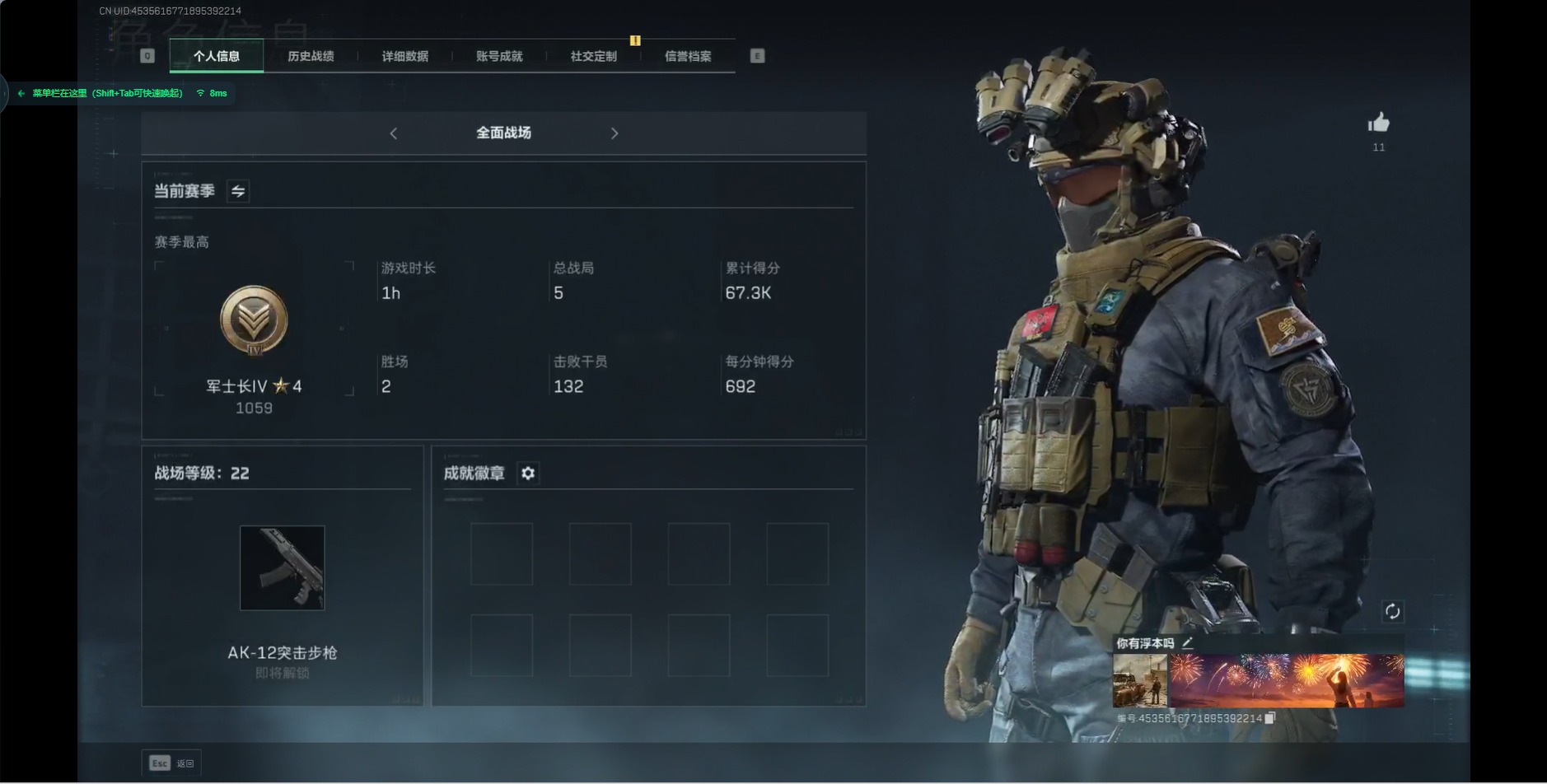 - PX_2082777-实名: 可修改 时装数: 158 枪械数: 56 战备数: 50 热门装扮: 幻彩电音 稀有枪皮: Kar98K-巳巳如意【5级】,AKS-74U-星穹咏叹调【5级】