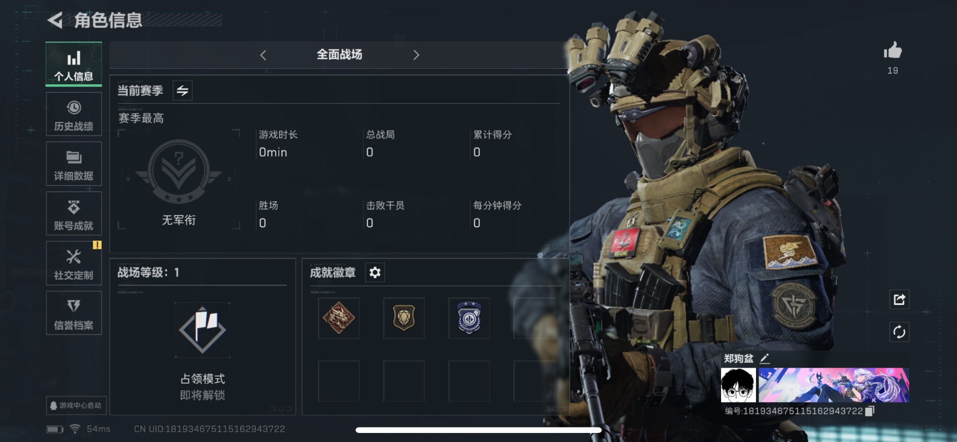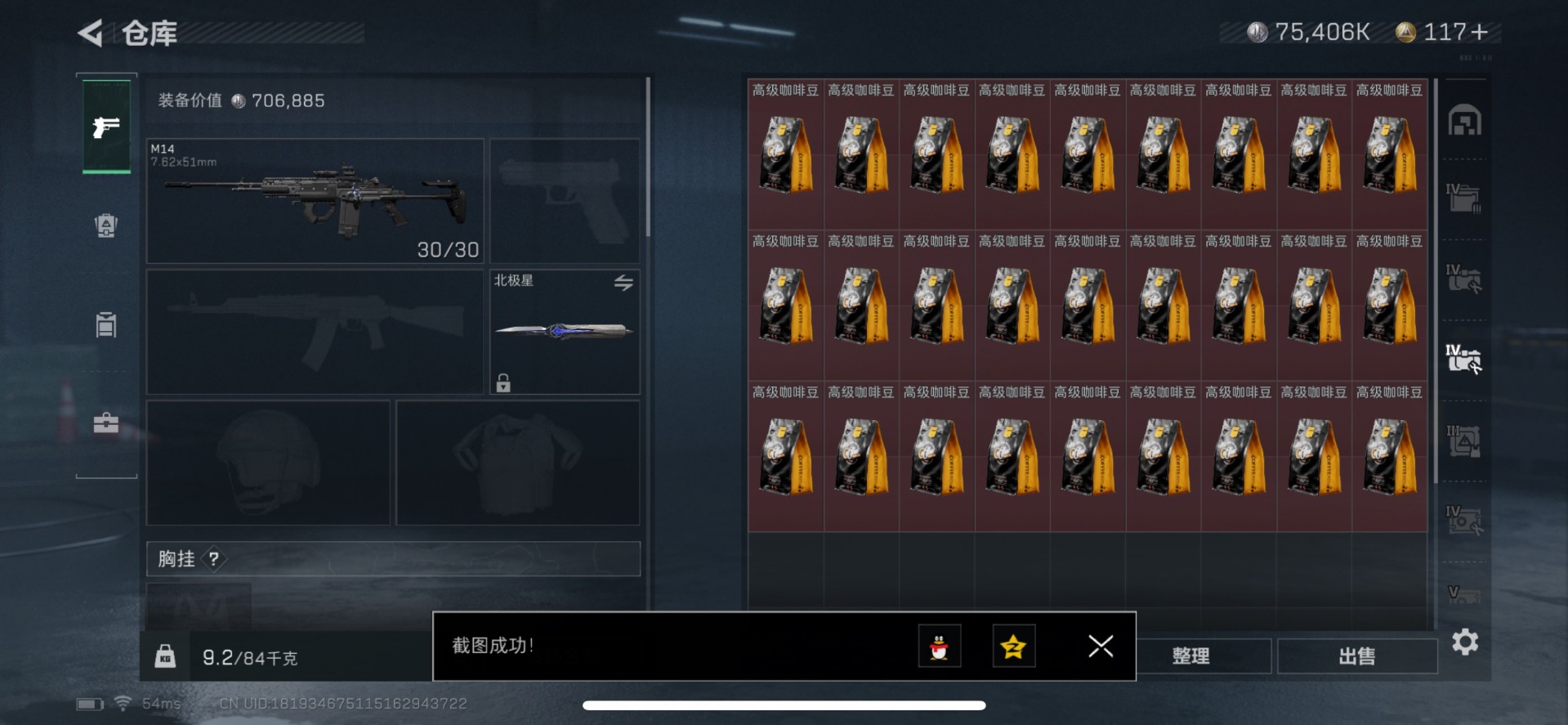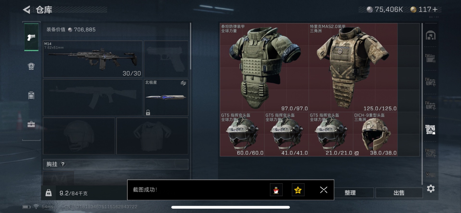 - [11599410]总资产:201.4 2干员外观 1近战传说 2传说枪械 可二次 可修改实名 优质装备:近战-北极星 烽火地带段位:黑鹰 全面战场段位:上等兵 哈夫币:17.708 传说武器皮肤:M4A1突击步枪-蚀金玫瑰 史诗武器皮肤:M4A1突击步枪-特勤执行 干员外观:红狼-蚀金玫瑰,露娜-黑·天际线