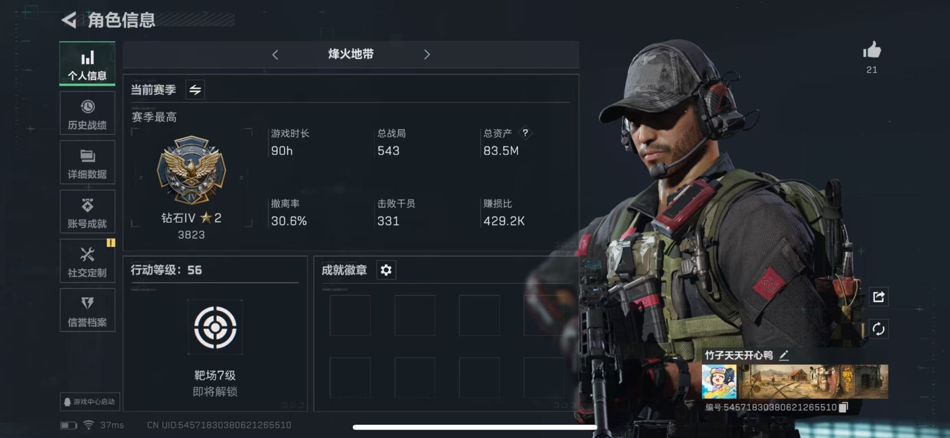[11445449]总资产:83.5M 10传说枪械 哈夫币:6.148K 进阶安全箱(2×2)9.15号到期 可二次 可修改实名 烽火地带段位:钻石 全面战场段位:无段位 传说武器皮肤:M4A1突击步枪-阿米娅,CAR-15突击步枪-阿米娅,复合弓-黑-天际线,AWM狙击步枪-捞点薯条,腾龙突击步枪-捞点薯条,93R-捞点薯条,AK-12突击步枪-特斯拉线圈,SR-3M紧凑突击步枪-特斯拉线圈,UZI冲锋枪-特斯拉线圈,勇士冲锋枪-能天使-午夜邮差 史诗武器皮肤:M16A4突击步枪-竞赛选手,SG552突击步枪-深海恐惧,SV-98狙击步枪-林中猎手,SCAR-H战斗步枪-囚徒