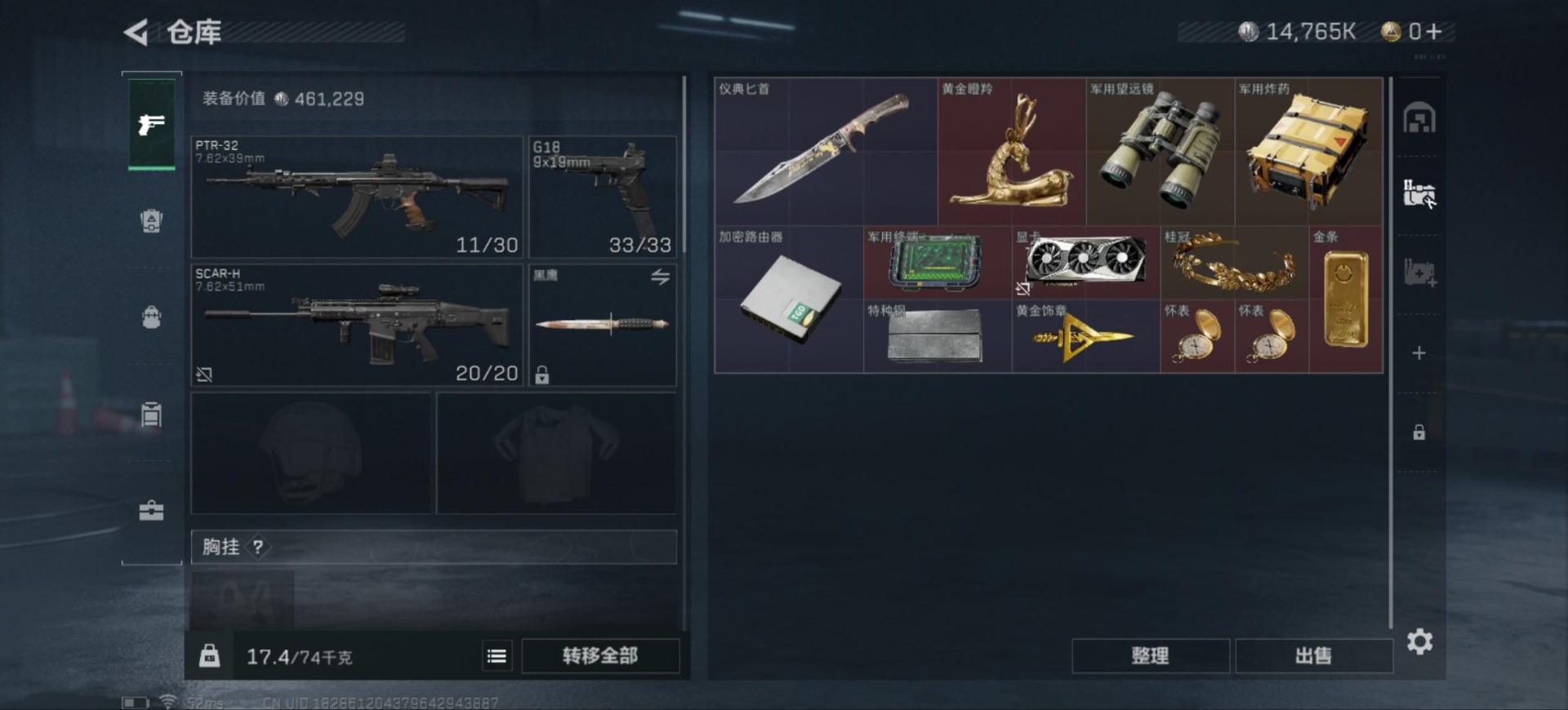 - [11296079]总资产:61.4 4传说枪械 可二次 可修改实名 烽火地带段位:青铜 全面战场段位:无段位 哈夫币:19.761 传说武器皮肤:CAR-15突击步枪-阿米娅,AWM狙击步枪-捞点薯条,腾龙突击步枪-捞点薯条,勇士冲锋枪-能天使-午夜邮差