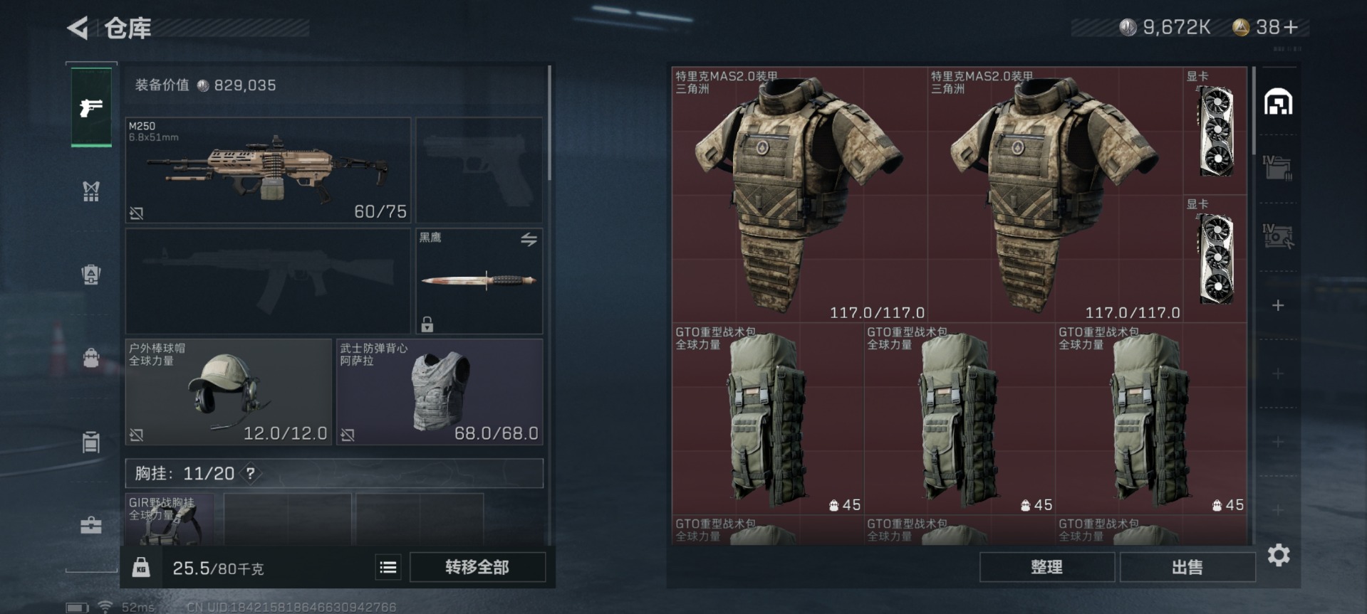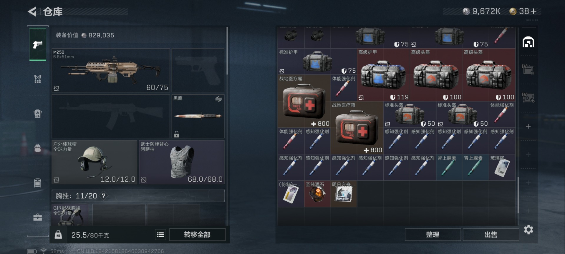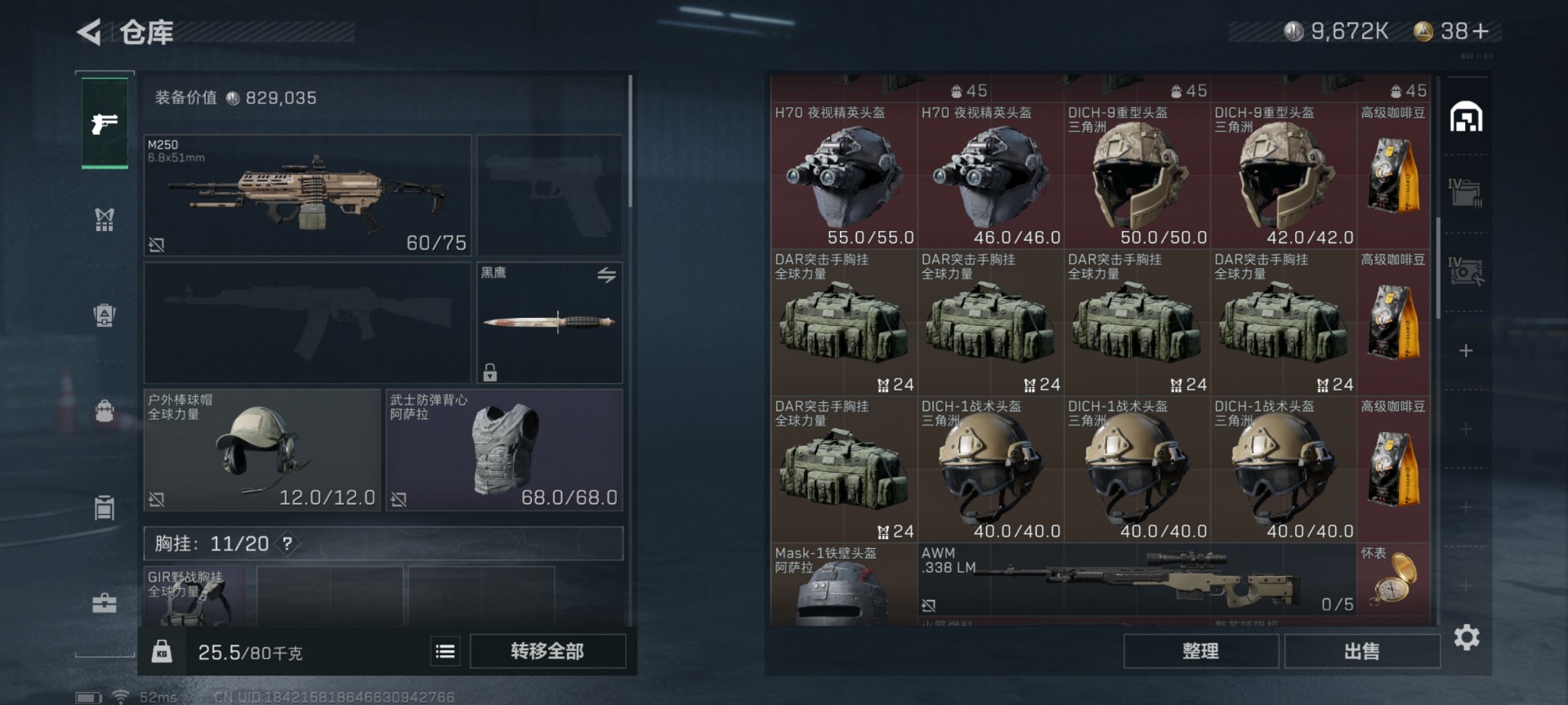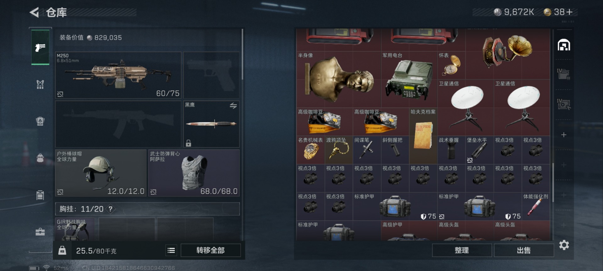 [11471369]总资产:129.5 1干员外观 3传说枪械 高级安全箱(9.17到期) 可二次 可修改实名 烽火地带段位:钻石 全面战场段位:无段位 哈夫币:9.672 传说武器皮肤:复合弓-黑-天际线,CAR-15突击步枪-阿米娅,725双管霰弹枪-送葬人-无题密令 史诗武器皮肤:PKM通用机枪-荒野求生,SV-98狙击步枪-林中猎手,PSG-1射手步枪-无垢,M250通用机枪-囚徒,SV-98狙击步枪-囚徒,SVD狙击步枪-阿萨拉工艺 干员外观:露娜-黑·天际线
