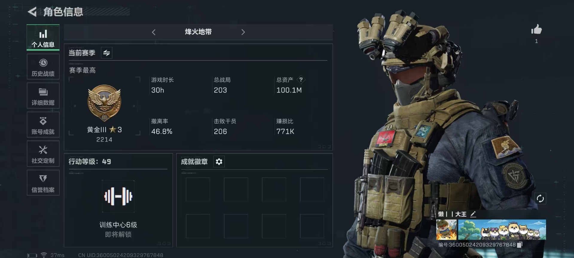 [11471699]总资产:100.1 1传说枪械 进阶安全箱(2×2)9.15号到期 可二次 可修改实名 烽火地带段位:黄金 全面战场段位:无段位 哈夫币:56.470 传说武器皮肤:M4A1突击步枪-阿米娅
