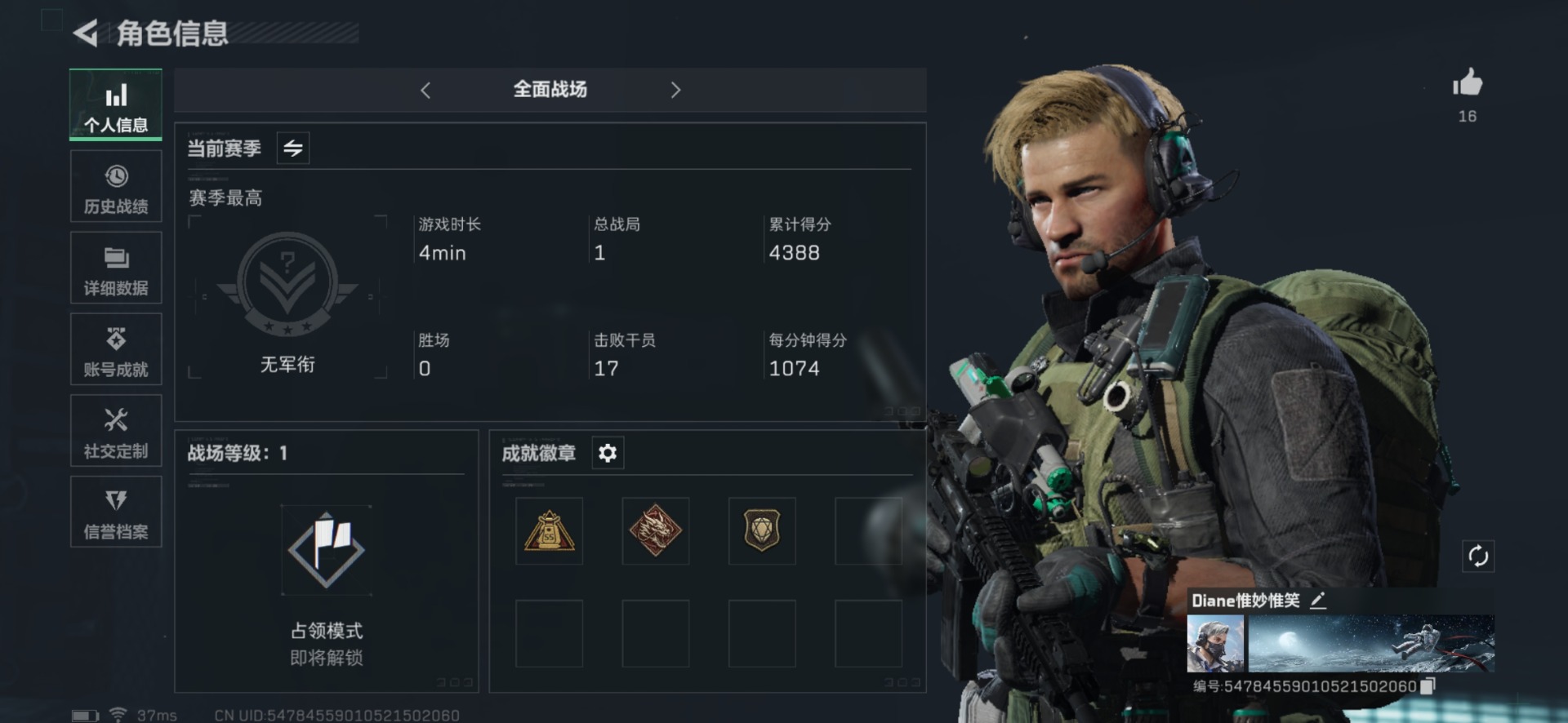 [11471929]总资产:104.5 1干员外观 2传说枪械 可二次 顶级安全箱(3×3)9.15号到期 可修改实名 烽火地带段位:黑鹰 全面战场段位:无段位 哈夫币:2.596 传说武器皮肤:复合弓-黑-天际线,725双管霰弹枪-送葬人-无题密令 干员外观:露娜-黑·天际线