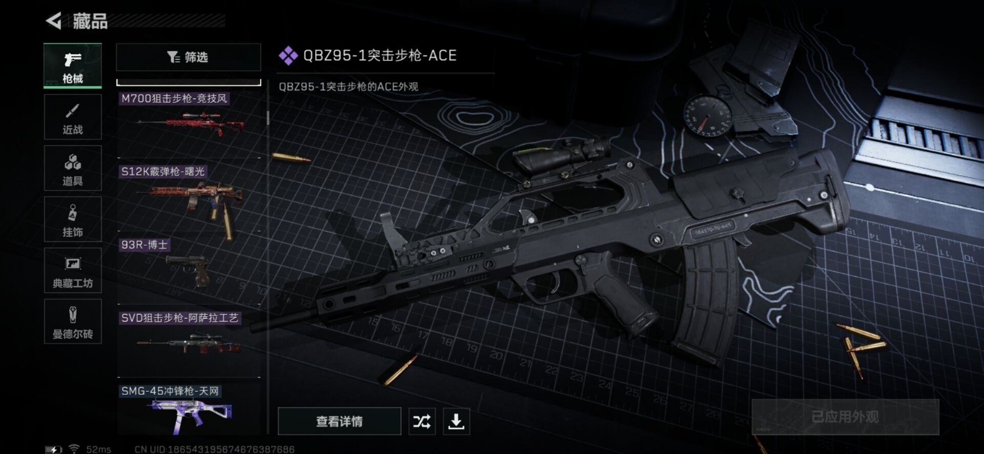 [11315413]总资产:230.9M 15传说枪械 哈夫币:13.900K 高级安全箱(9.17到期) 可二次 可修改实名 优质装备:SCAR-H战斗步枪-电玩高手 烽火地带段位:三角洲巅峰 全面战场段位:上等兵 传说武器皮肤:AS Val突击步枪-蛇年祥瑞,SR-25射手步枪-水墨云图,SCAR-H战斗步枪-铁艺苍穹,AK-12突击步枪-夜鹰,SMG45冲锋枪-骑士,M4A1突击步枪-阿米娅,CAR-15突击步枪-阿米娅,复合弓-黑-天际线,AWM狙击步枪-捞点薯条,腾龙突击步枪-捞点薯条,93R-捞点薯条,AK-12突击步枪-特斯拉线圈,SR-3M紧凑突击步枪-特斯拉线圈,UZI冲锋枪-特斯拉线圈 史诗武器皮肤:SR-3M紧凑突击步枪-英雄,QBZ95-1突击步枪-ACE,M4A1突击步枪-特勤执行,AUG突击步枪-特勤执行,Vector冲锋枪-红色彗星,PTR-32战斗步枪-ACE,SKS射手步枪-ACE,AUG突击步枪-蝮蛇,PKM通用机枪-蝮蛇,SR-25射手步枪-战场英杰,G3战斗步枪-战场英杰,Ash-12战斗步枪-守夜人,M16A4突击步枪-竞赛选手,PKM通用机枪-守夜人,M700狙击步枪-守夜人,SG552突击步枪-尖端治疗,SR-25射手步枪-尖端治疗,PKM通用机枪-荒野求生,勇士冲锋枪-深海恐惧,AKM突击步枪-林中猎手,SR-3M紧凑突击步枪-荒野求生,M1014霰弹枪-林中猎手,SV-98狙击步枪-林中猎手,SVD狙击步枪-荒野求生,SV-98狙击步枪-囚徒,SCAR-H战斗步枪-囚徒,腾龙突击步枪-无垢,PSG-1射手步枪-无垢,QBZ95-1突击步枪-曙光,沙漠之鹰-曙光,Vector冲锋枪-阿萨拉文明,PKM通用机枪-英雄