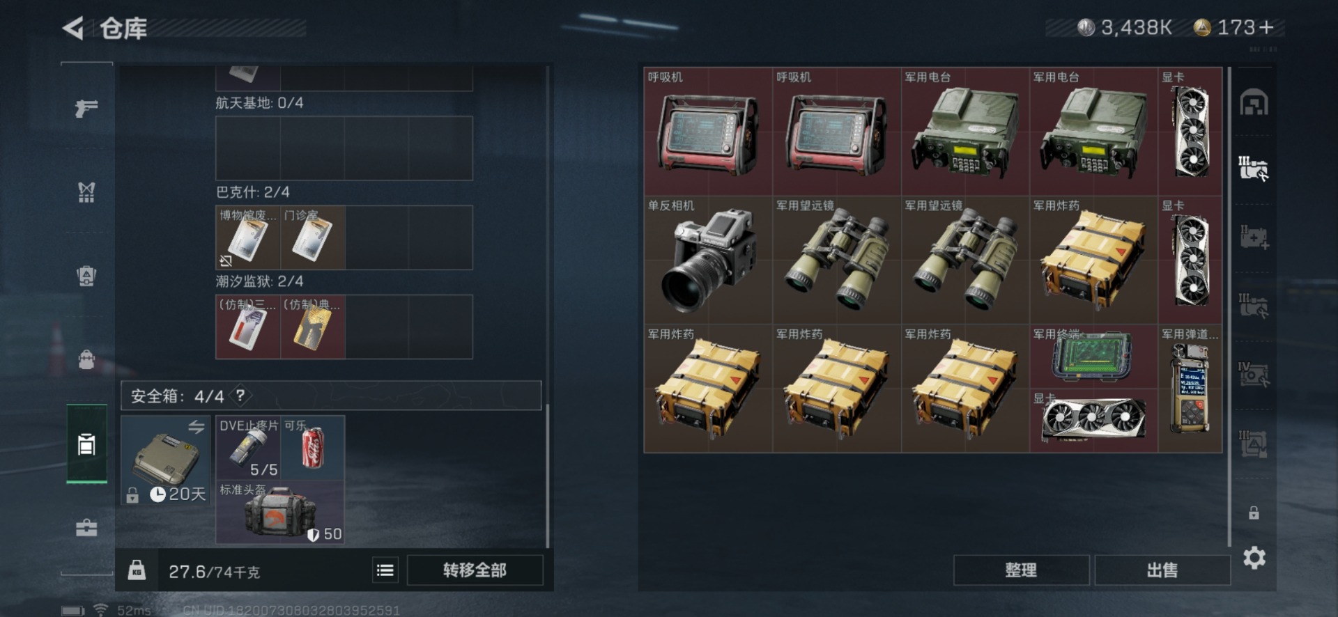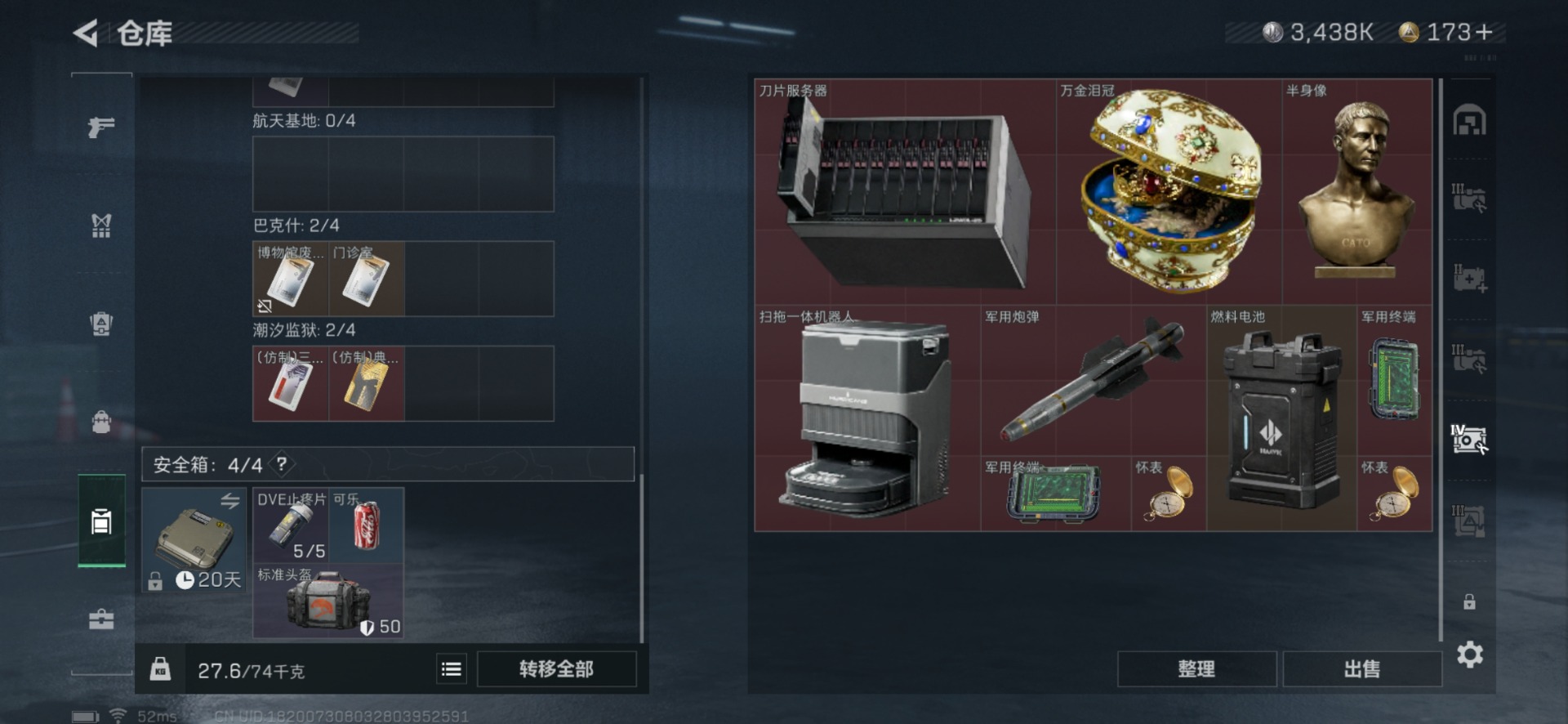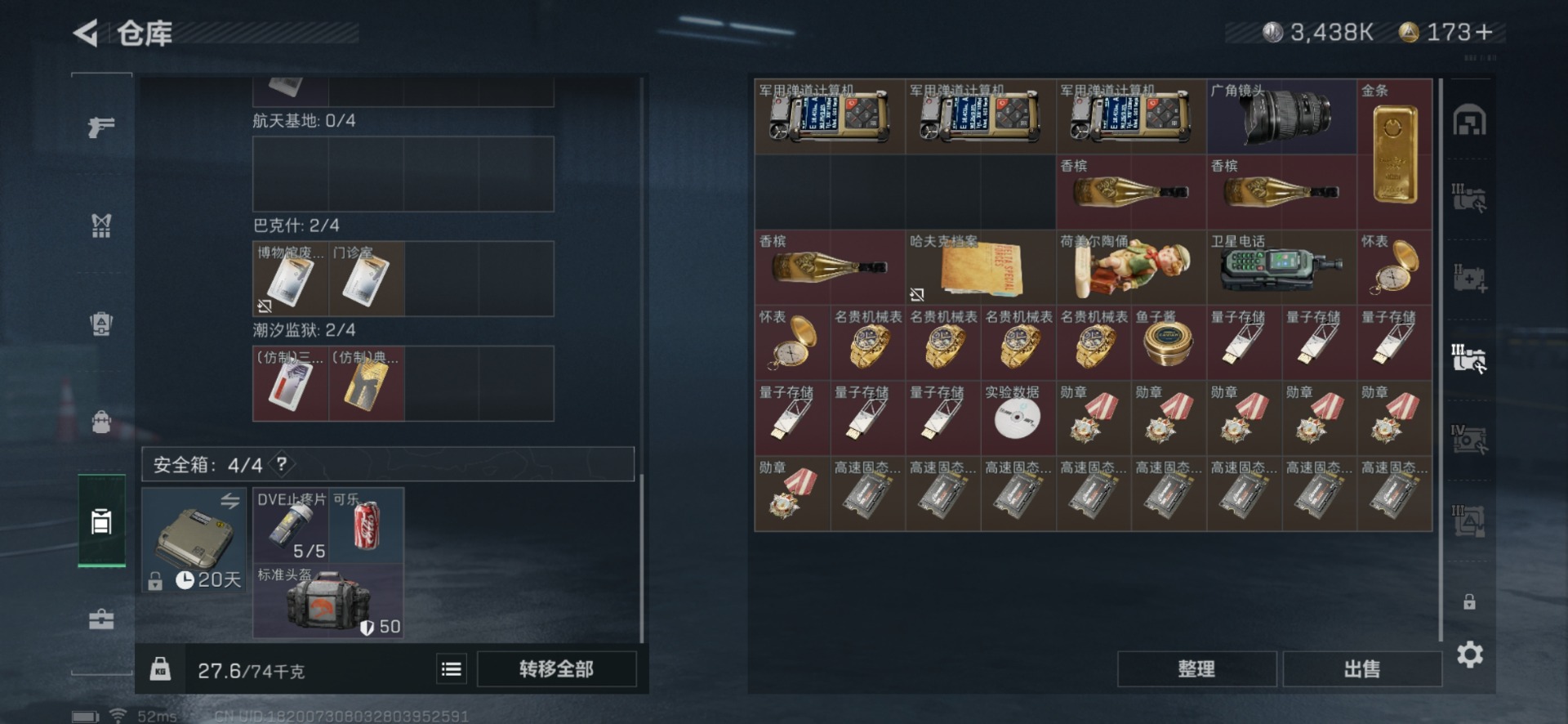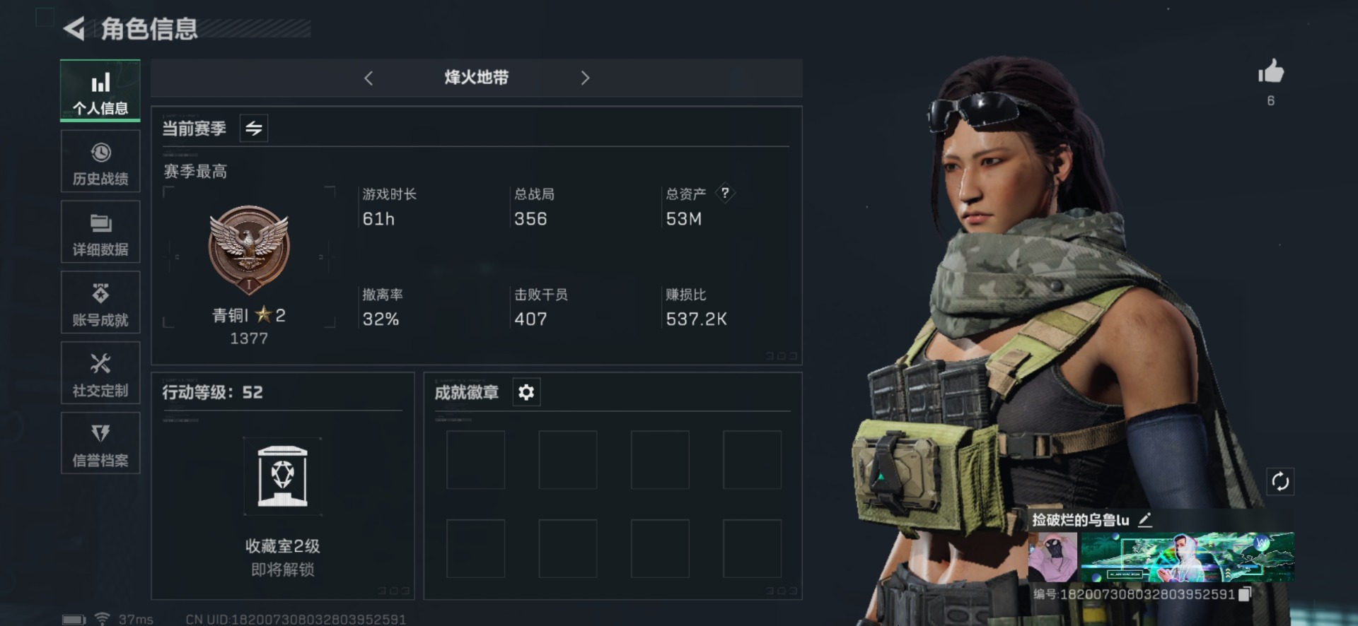 [11324153]总资产:53M 6传说枪械 哈夫币:3.438K 进阶安全箱(2×2)9.15号到期 可二次 可修改实名 烽火地带段位:青铜 全面战场段位:无段位 传说武器皮肤:M4A1突击步枪-阿米娅,CAR-15突击步枪-阿米娅,AWM狙击步枪-捞点薯条,腾龙突击步枪-捞点薯条,93R-捞点薯条,勇士冲锋枪-能天使-午夜邮差