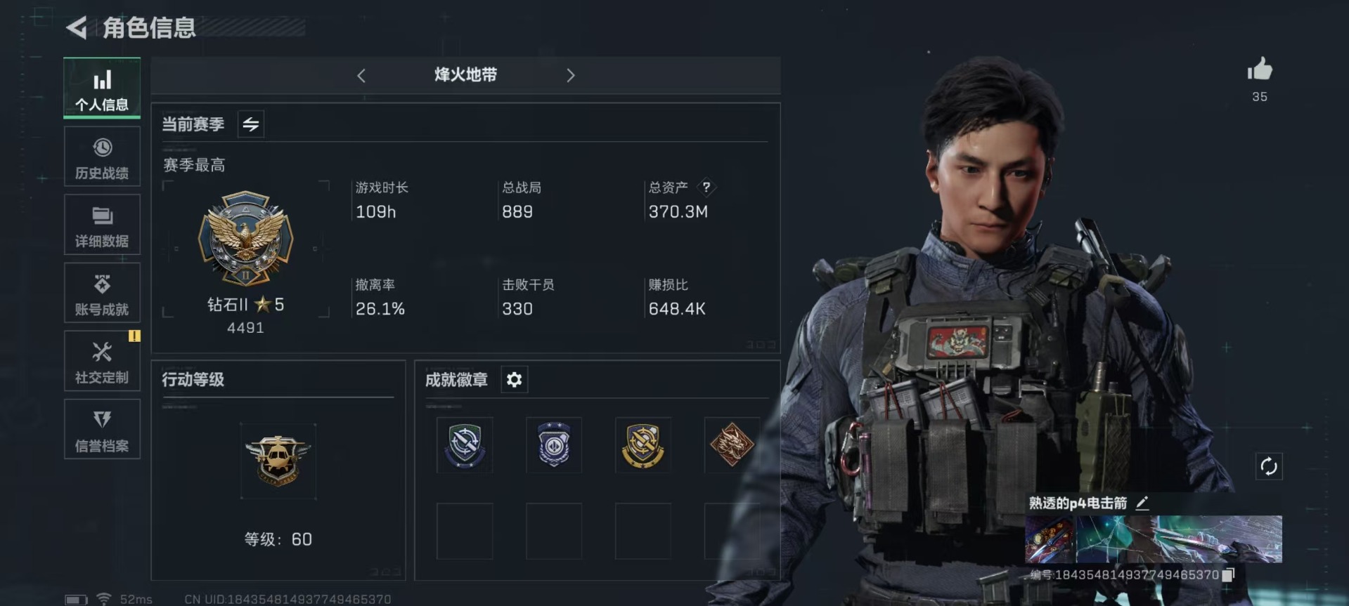 [11350353]总资产:370.3M 2干员外观 1近战传说 18传说枪械 哈夫币:105K 高级安全箱(2×3)9.15号到期 可二次 可修改实名 优质装备:近战-北极星 烽火地带段位:钻石 全面战场段位:列兵 传说武器皮肤:AK-12突击步枪-夜鹰,G18-飞虎,SMG45冲锋枪-骑士,M4A1突击步枪-阿米娅,CAR-15突击步枪-阿米娅,复合弓-黑-天际线,AWM狙击步枪-捞点薯条,QCQ171冲锋枪-北极星,腾龙突击步枪-捞点薯条,93R-捞点薯条,AK-12突击步枪-特斯拉线圈,SR-3M紧凑突击步枪-特斯拉线圈,UZI冲锋枪-特斯拉线圈,勇士冲锋枪-能天使-午夜邮差,725双管霰弹枪-送葬人-无题密令,K437突击步枪-北极星,M4A1突击步枪-蚀金玫瑰 史诗武器皮肤:SCAR-H战斗步枪-囚徒,腾龙突击步枪-无垢,沙漠之鹰-曙光 干员外观:红狼-蚀金玫瑰,威龙-飞虎