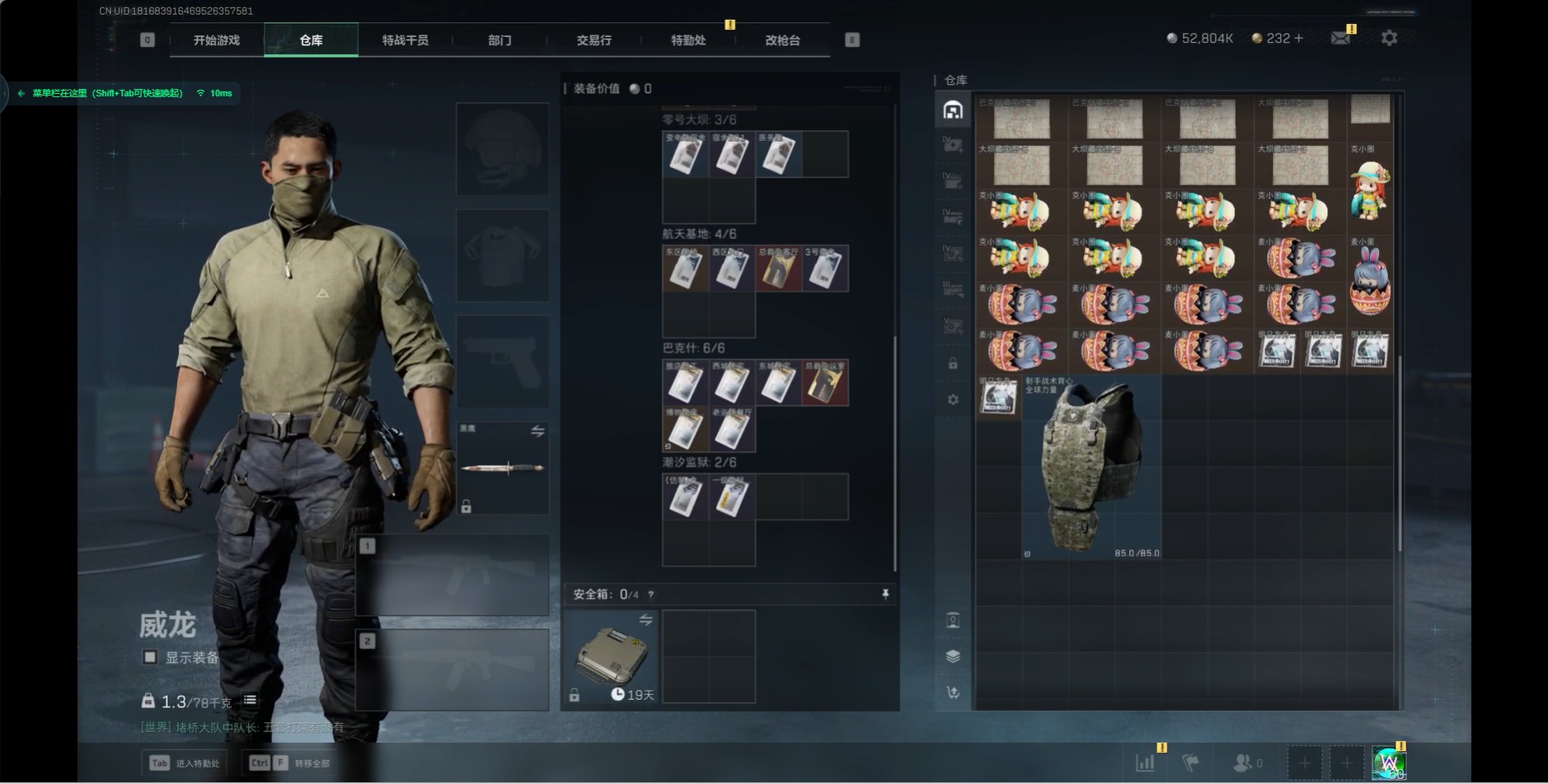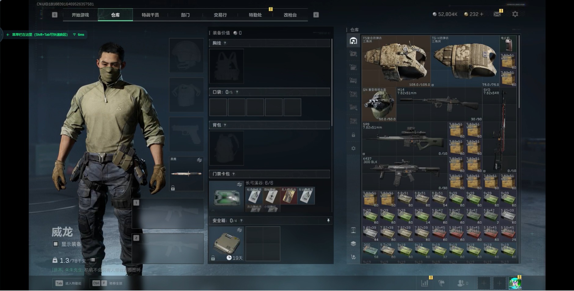 [11342968]总资产:173.7M 10传说枪械 哈夫币:52.804K 进阶安全箱(2×2)9.15号到期 可二次 可修改实名 烽火地带段位:钻石 全面战场段位:无段位 传说武器皮肤:93R-捞点薯条,AWM狙击步枪-捞点薯条,腾龙突击步枪-捞点薯条,AK-12突击步枪-特斯拉线圈,CAR-15突击步枪-阿米娅,SR-3M紧凑突击步枪-特斯拉线圈,UZI冲锋枪-特斯拉线圈,勇士冲锋枪-能天使-午夜邮差,复合弓-黑-天际线,M4A1突击步枪-阿米娅 史诗武器皮肤:M700狙击步枪-蝮蛇,M16A4突击步枪-竞赛选手,勇士冲锋枪-深海恐惧,AKM突击步枪-林中猎手,M1014霰弹枪-林中猎手,SV-98狙击步枪-林中猎手,PTR-32突击步枪-英雄,M250通用机枪-囚徒,SCAR-H战斗步枪-囚徒,QBZ95-1突击步枪-曙光