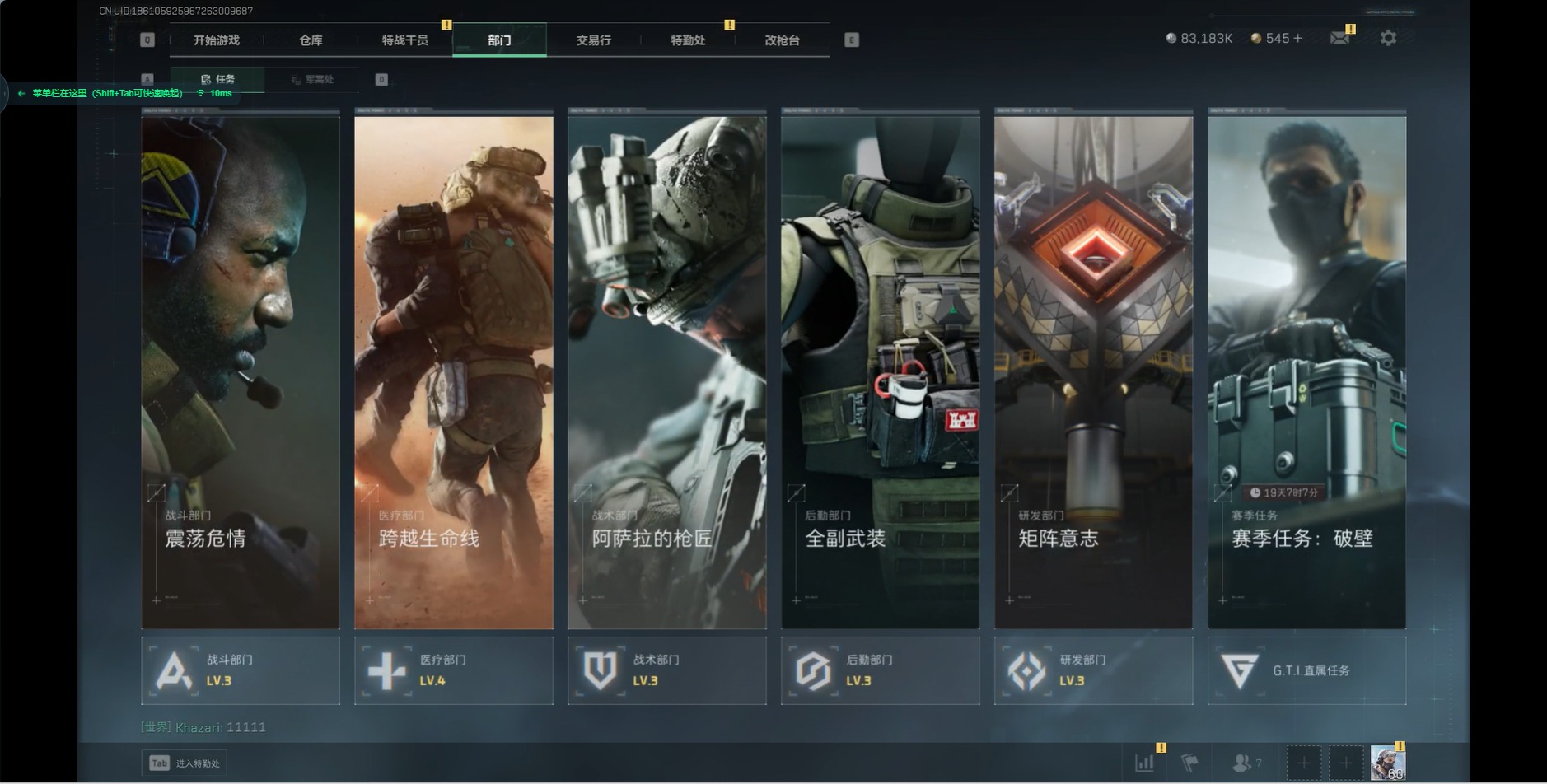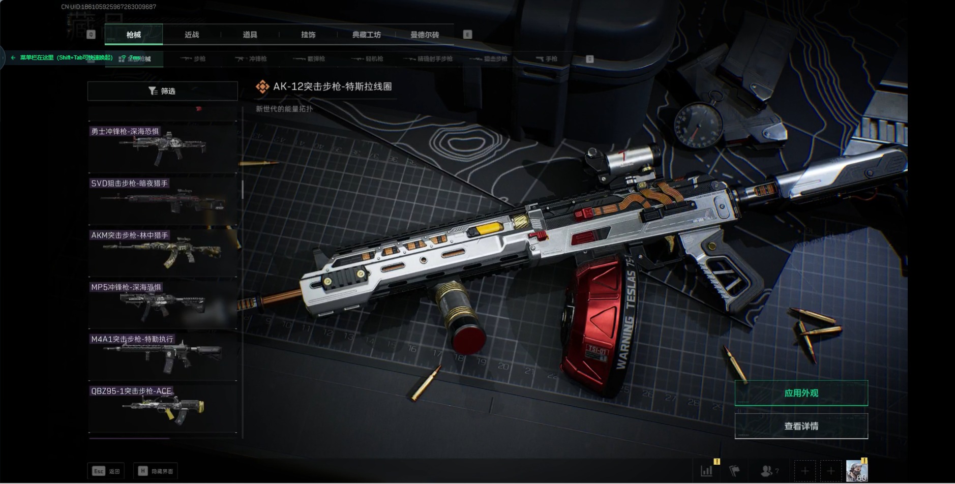 - [11608854]总资产:50M 6传说枪械 哈夫币:18.448K 可二次 可修改实名 烽火地带段位:白银 全面战场段位:无段位 传说武器皮肤:93R-捞点薯条,AWM狙击步枪-捞点薯条,腾龙突击步枪-捞点薯条,勇士冲锋枪-能天使-午夜邮差,Vector冲锋枪-能天使-午夜邮差,M4A1突击步枪-阿米娅