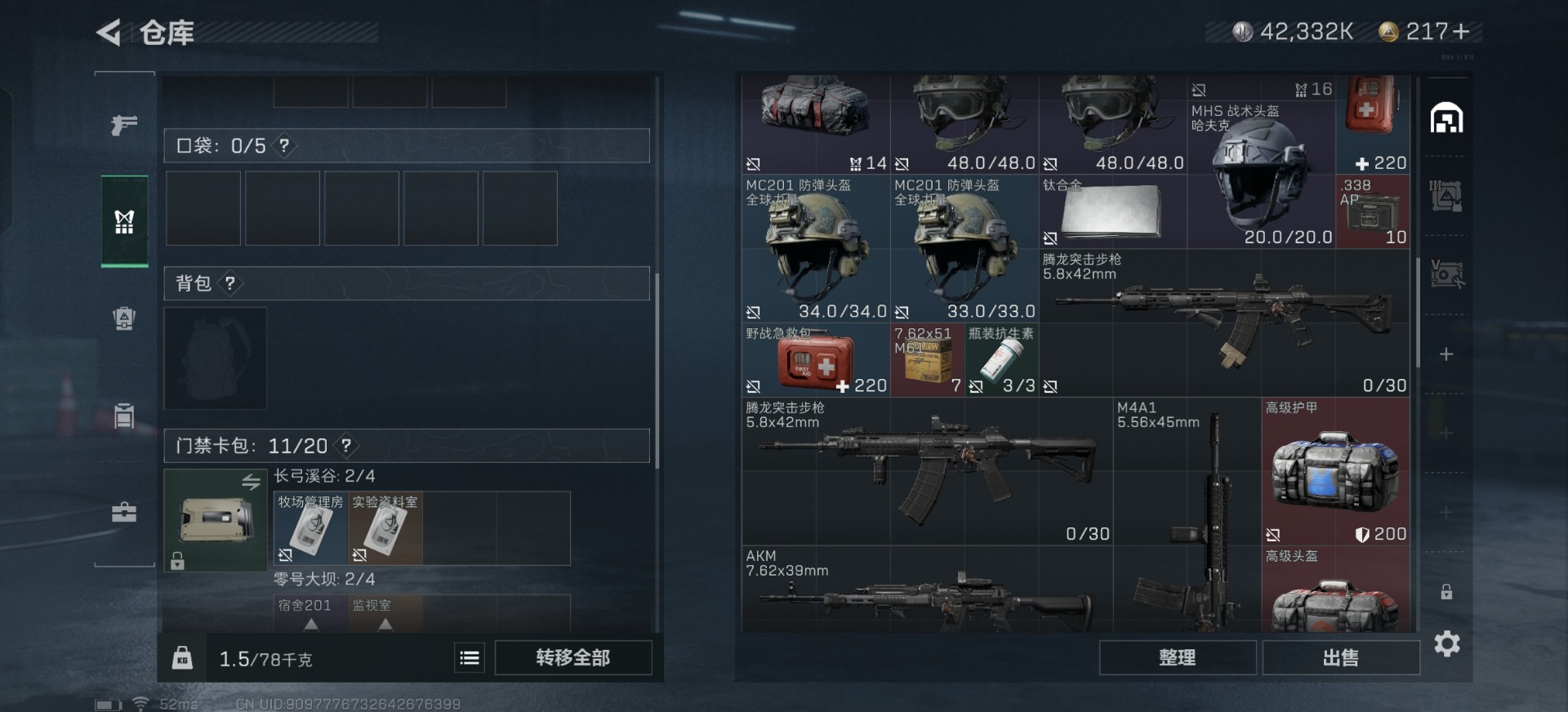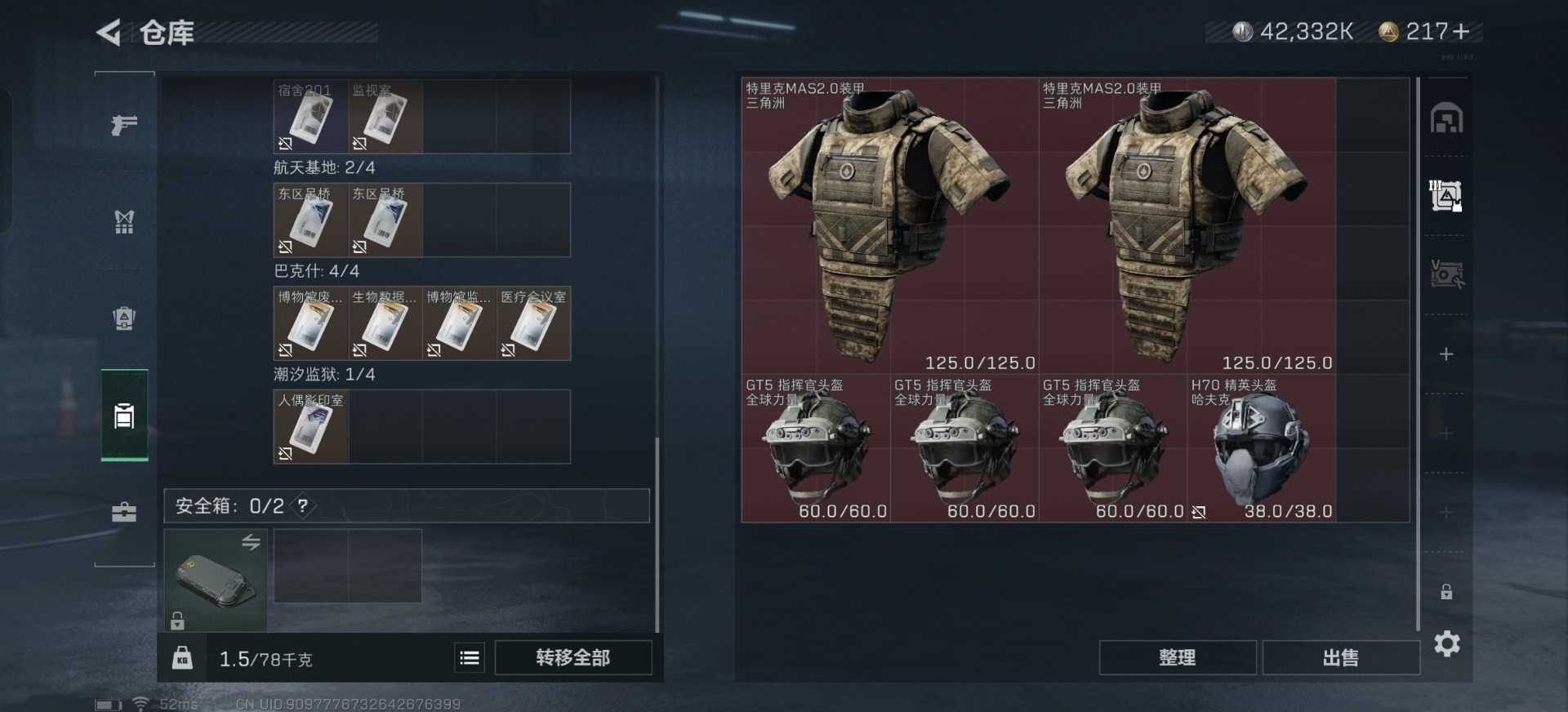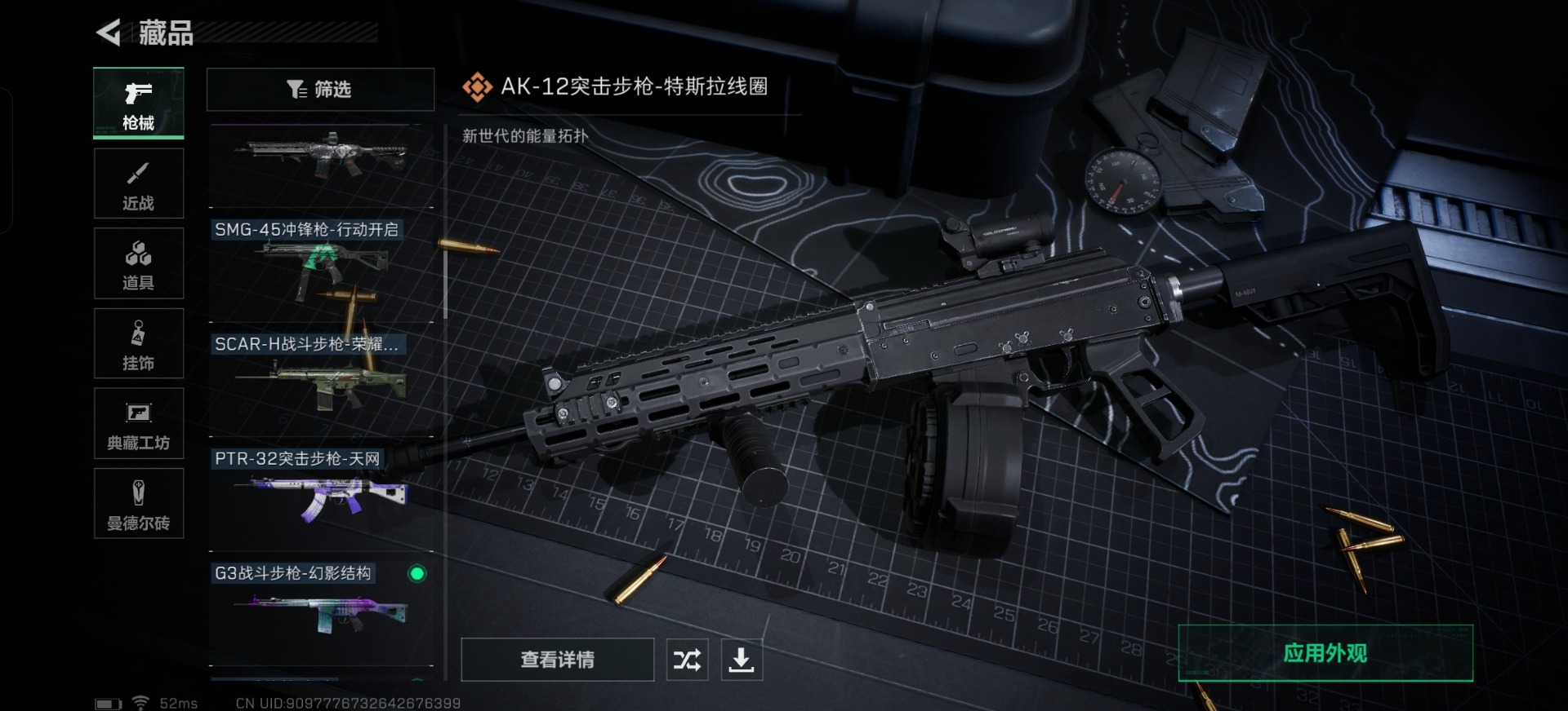 - [12226294]总资产:349.9M 14传说枪械 哈夫币:374.286K 顶级安全箱(3×3)9.15号到期 可二次 可修改实名 优质装备:顶级安全箱(3x3) 烽火地带段位:三角洲巅峰 全面战场段位:无段位 传说武器皮肤:QJB201轻机枪-风林火山,SR-25射手步枪-水墨云图,SMG45冲锋枪-骑士,93R-捞点薯条,AWM狙击步枪-捞点薯条,腾龙突击步枪-捞点薯条,AK-12突击步枪-特斯拉线圈,CAR-15突击步枪-阿米娅,SR-3M紧凑突击步枪-特斯拉线圈,UZI冲锋枪-特斯拉线圈,勇士冲锋枪-能天使-午夜邮差,复合弓-黑-天际线,M4A1突击步枪-阿米娅,725双管霰弹枪-送葬人-无题密令 史诗武器皮肤:PKM通用机枪-荒野求生,SR-3M紧凑突击步枪-荒野求生,SVD狙击步枪-荒野求生,M250通用机枪-囚徒,SV-98狙击步枪-囚徒,腾龙突击步枪-无垢,MP7冲锋枪-无垢,PSG-1射手步枪-无垢,S12K霰弹枪-曙光