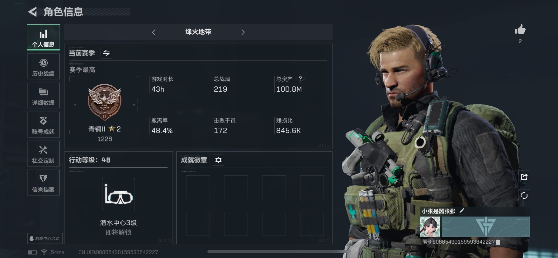 [11411457]总资产:100.8M 5传说枪械 哈夫币:14.927K 进阶安全箱(9.17到期) 可二次 可修改实名 烽火地带段位:青铜 全面战场段位:无段位 传说武器皮肤:93R-捞点薯条,AWM狙击步枪-捞点薯条,腾龙突击步枪-捞点薯条,勇士冲锋枪-能天使-午夜邮差,复合弓-黑-天际线 史诗武器皮肤:SV-98狙击步枪-林中猎手