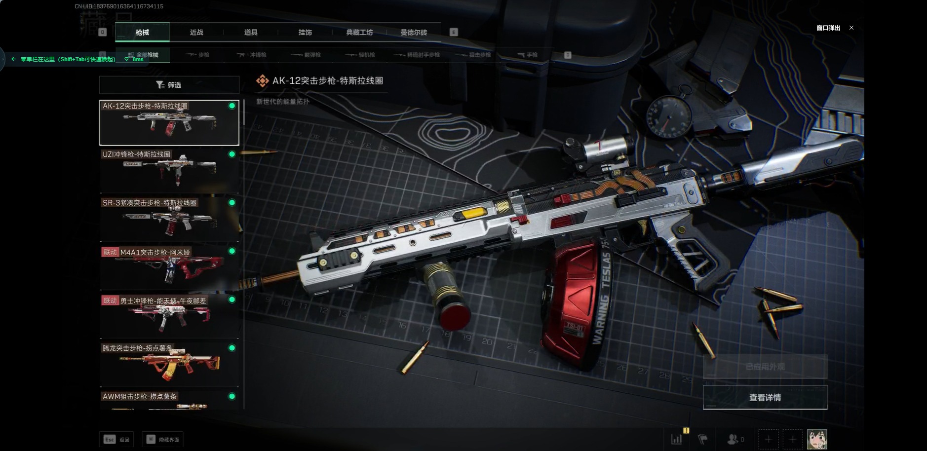 [11417287]总资产:177.1M 1干员外观 1近战传说 11传说枪械 哈夫币:29.584K 顶级安全箱(3×3)9.15号到期 可二次 可修改实名 优质装备:近战-黑海,顶级安全箱(3x3) 烽火地带段位:黑鹰 全面战场段位:列兵 传说武器皮肤:AK-12突击步枪-夜鹰,AWM狙击步枪-捞点薯条,腾龙突击步枪-捞点薯条,AK-12突击步枪-特斯拉线圈,CAR-15突击步枪-阿米娅,SR-3M紧凑突击步枪-特斯拉线圈,UZI冲锋枪-特斯拉线圈,勇士冲锋枪-能天使-午夜邮差,复合弓-黑-天际线,M4A1突击步枪-阿米娅 史诗武器皮肤:AUG突击步枪-蝮蛇,PKM通用机枪-蝮蛇,Ash-12战斗步枪-守夜人,M16A4突击步枪-竞赛选手,PKM通用机枪-守夜人,AS Val突击步枪-尖端治疗,M700狙击步枪-守夜人,SG552突击步枪-尖端治疗,SR-25射手步枪-尖端治疗,MP5冲锋枪-深海恐惧,勇士冲锋枪-深海恐惧,AKM突击步枪-林中猎手,.357左轮-幸运时刻,M1014霰弹枪-林中猎手,SV-98狙击步枪-林中猎手,PTR-32突击步枪-英雄,SV-98狙击步枪-囚徒,M14射手步枪-黑鹰坠落,QBZ95-1突击步枪-曙光,沙漠之鹰-曙光,M700狙击步枪-竞技风 干员外观:露娜-黑·天际线