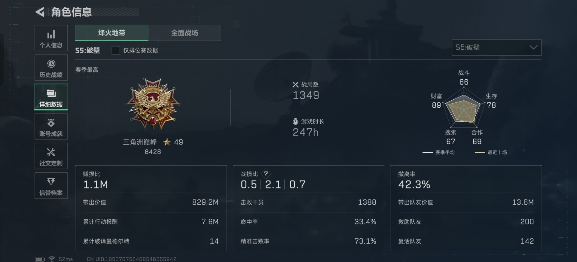 [11347081]总资产:122.7M 1近战传说 9传说枪械 哈夫币:28.292K 可二次 可修改实名 安全保护中 优质装备:近战-黑海,顶级安全箱(3x3) 烽火地带段位:三角洲巅峰 全面战场段位:列兵 传说武器皮肤:AK-12突击步枪-夜鹰,M4A1突击步枪-阿米娅,CAR-15突击步枪-阿米娅,复合弓-黑-天际线,AWM狙击步枪-捞点薯条,腾龙突击步枪-捞点薯条,93R-捞点薯条,勇士冲锋枪-能天使-午夜邮差 史诗武器皮肤:MP5冲锋枪-深海恐惧