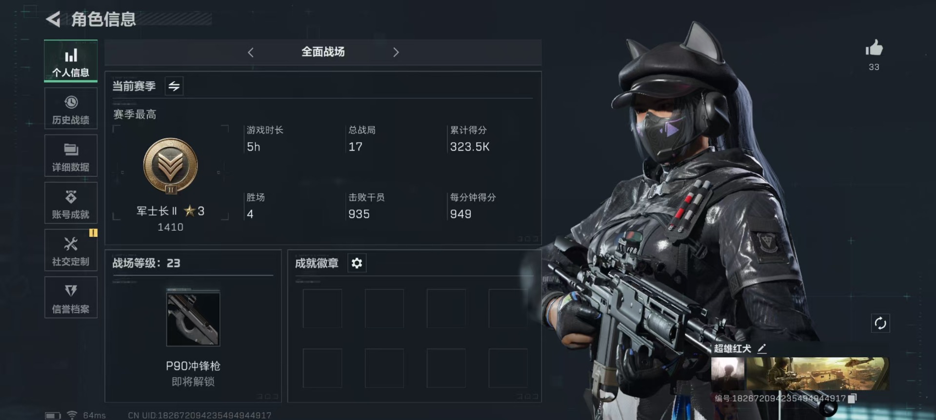 - PX_2101699-苹果QQ 历史总热力值:59048 粉装数量:7 特效枪数量:9 王牌印记:11 历史最高段位:超级王牌16星 套装数量:132 时装数量:503 枪械数量:191 战备数量:129 装备数量:218 时装:套装-天使彩虹糖,套装-寒光使者,套装-梦幻火箭,套装-第五大道,套装-霞光圣骑,角色-羊梦糖心,角色-萨利娅,套装-SS20特训,套装-SS21特训,套装-SS22特训
