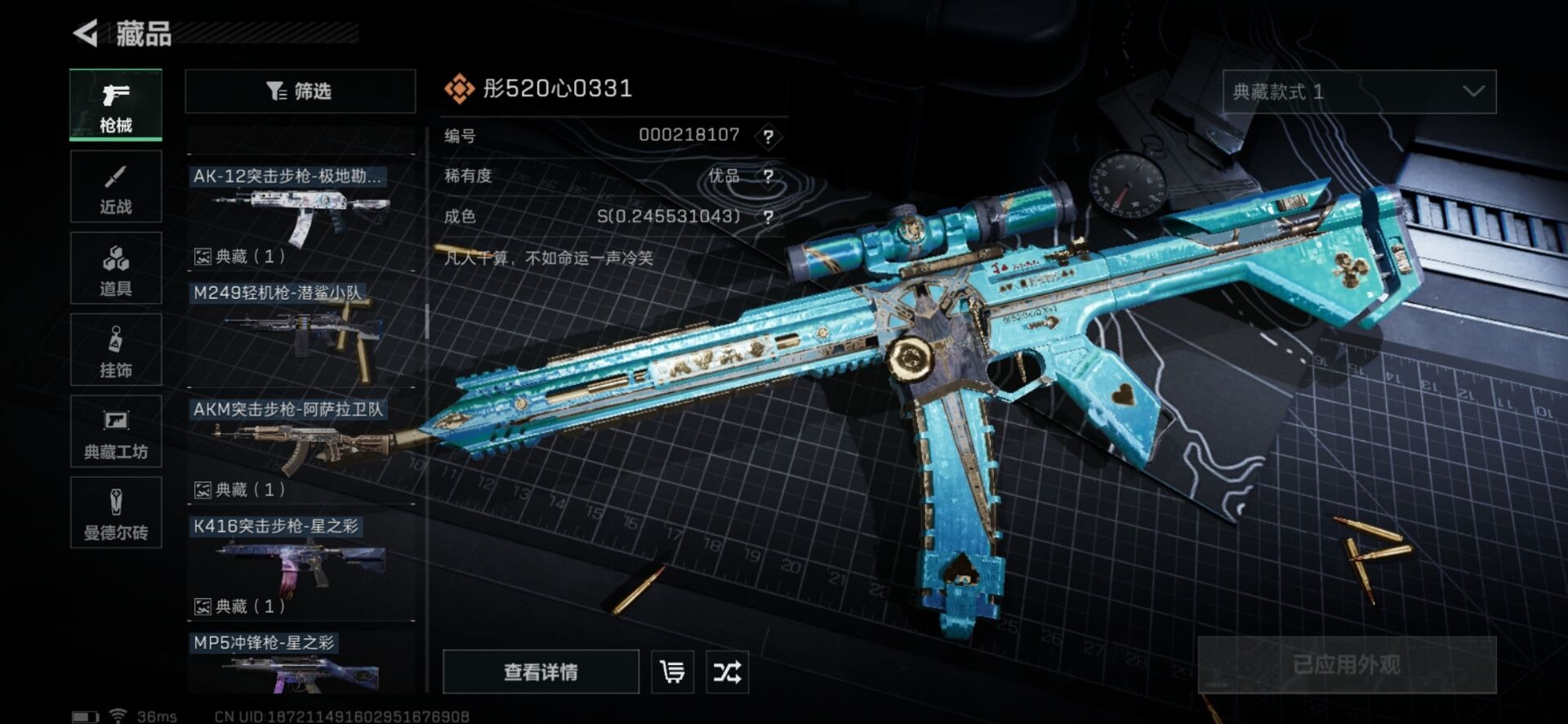 - PX_2105252- 安卓手Q-15王牌印记-6粉装-9特效枪-0载具-73782热力值-168套装-222枪皮-2卓越印记-1传奇印记 【6粉装】,星穹咏叹调,彩虹甜喵,海渊国主,金属狂野,暗夜鎏金,未来歌姬 【9特效枪】AKM-炫紫旋律-7级 SCAR-L-青春物语-5级 M416-五爪金龙-6级 AUG-暖羊咩咩-5级 Kar98K-巳巳如意-4级 Mk14-甜梦熊击-5级 UMP45-量