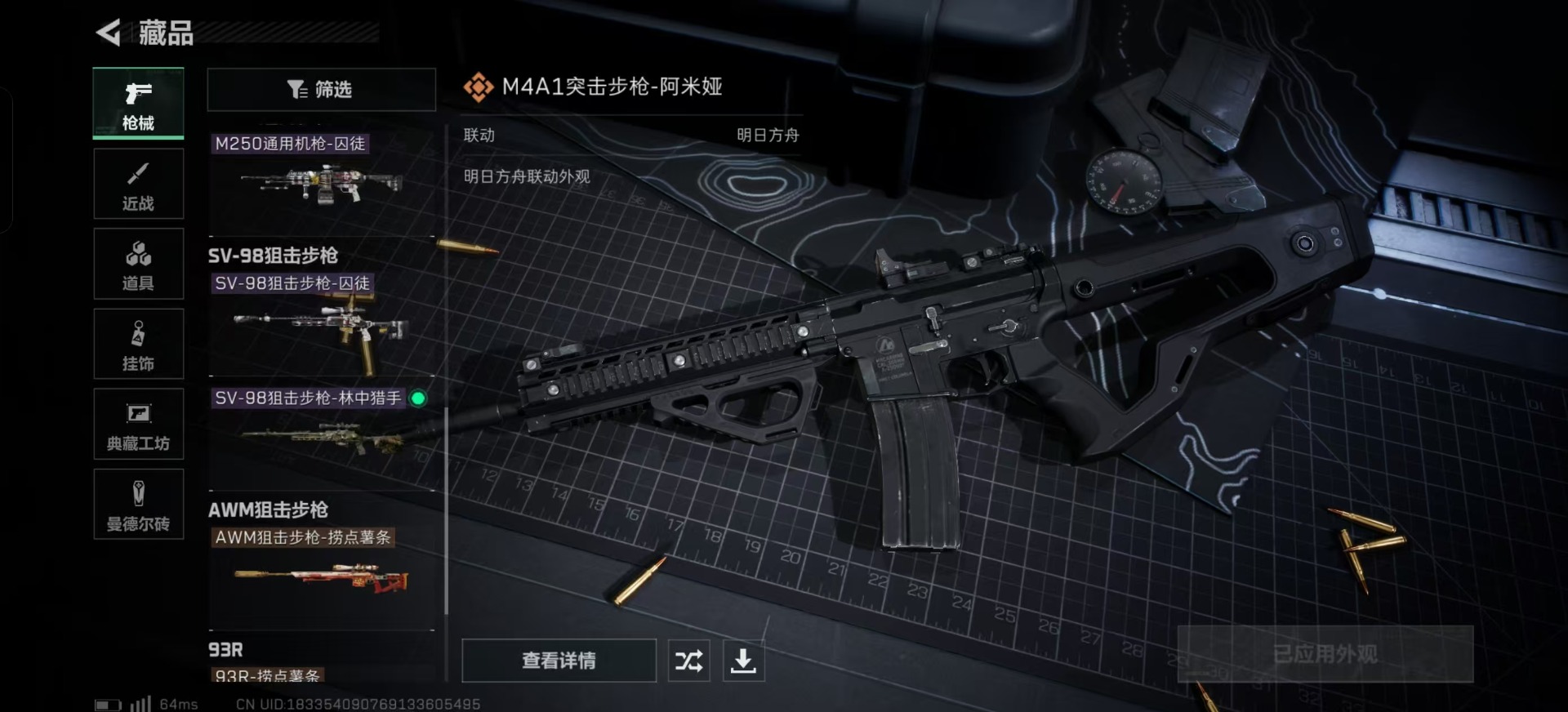 [11347204]总资产:50.3M 7传说枪械 哈夫币:18.611K 进阶安全箱(9.17到期) 可二次 可修改实名 烽火地带段位:黄金 全面战场段位:无段位 传说武器皮肤:M4A1突击步枪-阿米娅,CAR-15突击步枪-阿米娅,复合弓-黑-天际线,AWM狙击步枪-捞点薯条,腾龙突击步枪-捞点薯条,93R-捞点薯条,勇士冲锋枪-能天使-午夜邮差 史诗武器皮肤:勇士冲锋枪-深海恐惧,SG552突击步枪-深海恐惧,SV-98狙击步枪-林中猎手,M250通用机枪-囚徒,SV-98狙击步枪-囚徒