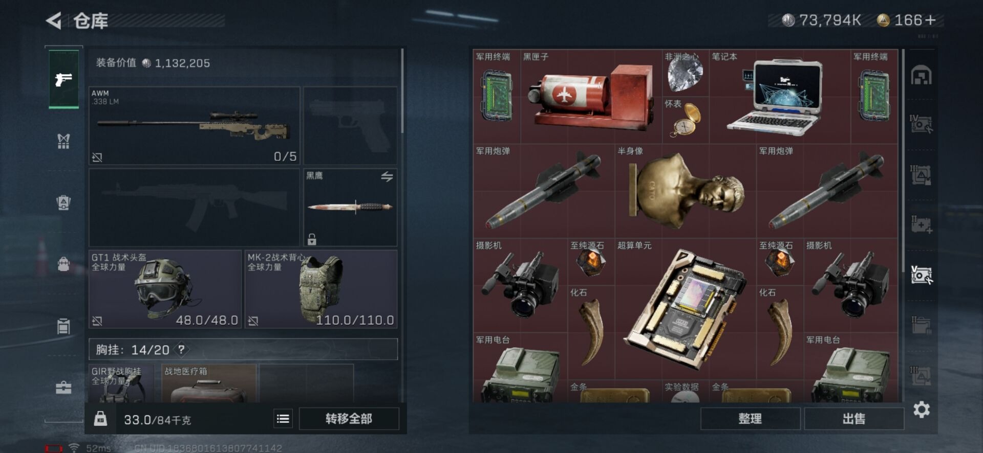 - [11446252]总资产:672.3M 2干员外观 1近战传说 10传说枪械 哈夫币:335K 顶级安全箱(3×3)9.15号到期 可二次 可修改实名 优质装备:近战-黑海,顶级安全箱(3x3) 烽火地带段位:铂金 全面战场段位:上等兵 传说武器皮肤:SR-25射手步枪-水墨云图,SMG45冲锋枪-骑士,CAR-15突击步枪-阿米娅,复合弓-黑-天际线,AWM狙击步枪-捞点薯条,腾龙突击步枪-捞点薯条,93R-捞点薯条,勇士冲锋枪-能天使-午夜邮差,725双管霰弹枪-送葬人-无题密令 干员外观:威龙-飞虎,露娜-黑·天际线