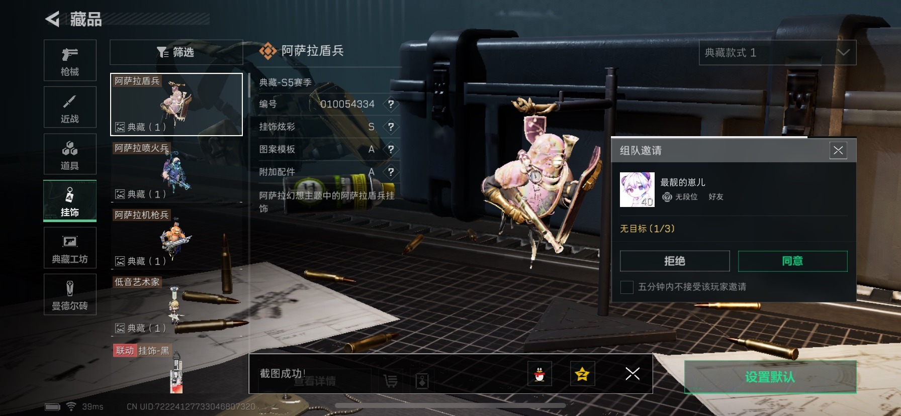 - [11516140]2粉装 2特效枪 3印记 可二次 可修改实名 女号 优质装备:AMR-智耀战神,星穹咏叹调,蜜獾-荧海星豚 热门装扮:朗月武圣 五级特效枪:五级AMR-智耀战神 二级特效枪:二级蜜獾-荧海星豚 紫色装扮:SS22特训,龙舌兰冰茶,妙红点点,幻彩翩翩,SS23特训,娇憨猪猪,萌趣咩咩,SS21特训,绚烂繁星,SS30特训套装,冰川特警,冷焰舞者,青涩时光,霓虹热舞,极速光影,SS20特训,SS31特训套装,云朵鹅,雪绒豹,SS33特训套装,顶瓜瓜,虚音幻奏,SS19特训,竞技角斗士,香草威化,甜心亚梦,SS18特训,坚韧舞者,长空猛禽,都市漫游者,酒红色名流,霓虹街区,青年教官,青涩年华,缤纷果语,耀眼新星,荣耀,蓝彩潮人,蓝色守护者,街头潮人,魅力单车,麻辣教官,黄色伏地魔,黄色名流,黄色运动,黎明保卫者,黑色伏地魔,绮丽涂鸦,极地朋克,极速红龙,柠萌假日,深蓝色名流,湖蓝色名流,幻世战舞者,完美偶像,帅气教官,幻影武者,探宝勇士,白色伏地魔,破晓战魂,破蛋小黄鸡,王牌教练,空岛之星,竞技达人朋克,红色运动,猛禽,灼焰舞者,牛气冲天,猎鹰,牛气满满,白光莹,SS28特训,玉兔迎春,竞技名士,惊鸿侠骨,SS25特训,SS24特训(SS24特训套装),锦衣飞扬,SS27特训,小丑鱼,SS26特训,大橘大利,小鸟芋圆,耀粉歌者,SS32特训服(SS32特训套装),青玉碎影,萌黄之夏,白糯汤圆,光之冒险,红剪之缘 优质战备:炙焰牛王降落伞,荧海星豚降落伞,彩虹甜喵降落伞,仲夏莫吉托降落伞