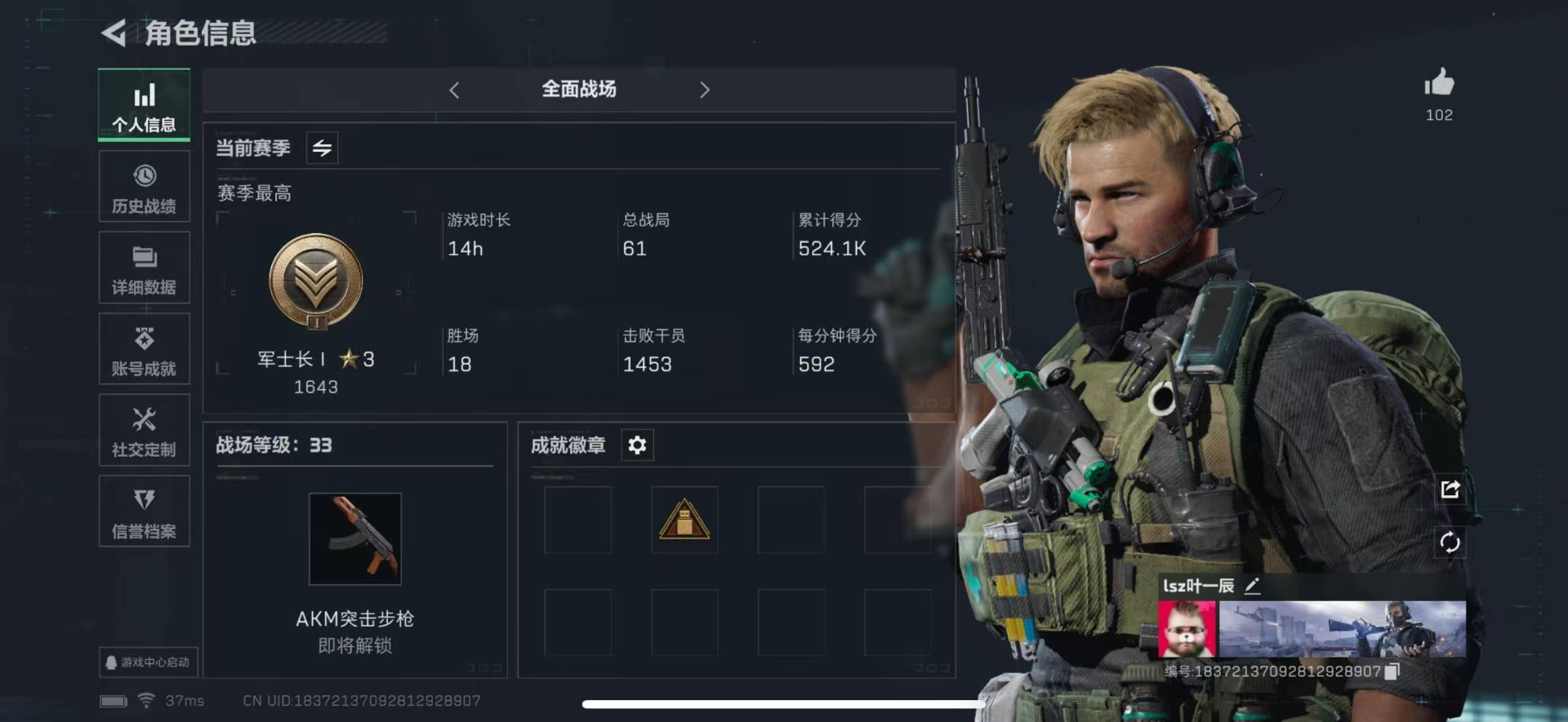 - [11439205]总资产:97.9M 1干员外观 2近战传说 19传说枪械 哈夫币:2.962K 高级安全箱(9.17到期) 可二次 可修改实名 优质装备:近战-黑海,近战-北极星 烽火地带段位:黑鹰 全面战场段位:上等兵 传说武器皮肤:UZI冲锋枪-特斯拉线圈,M16A4突击步枪-狩猎时刻,AK-12突击步枪-特斯拉线圈,SR-3M紧凑突击步枪-特斯拉线圈,勇士冲锋枪-能天使-午夜邮差,Vector冲锋枪-狩猎时刻,G3战斗步枪-狩猎时刻,M250通用机枪-游乐场,M14射手步枪-工业审判,复合弓-黑-天际线,K437突击步枪-北极星,QCQ171冲锋枪-北极星,725双管霰弹枪-送葬人-无题密令,M4A1突击步枪-阿米娅,M4A1突击步枪-蚀金玫瑰,MP5冲锋枪-黑海,QJB201轻机枪-黑海 史诗武器皮肤:Ash-12战斗步枪-守夜人,M16A4突击步枪-竞赛选手,PKM通用机枪-守夜人,AS Val突击步枪-尖端治疗,M700狙击步枪-守夜人,SG552突击步枪-尖端治疗,SR-25射手步枪-尖端治疗,M1014霰弹枪-林中猎手,AKM突击步枪-林中猎手,SV-98狙击步枪-林中猎手,PTR-32突击步枪-英雄,PKM通用机枪-荒野求生,腾龙突击步枪-无垢,MP7冲锋枪-无垢,PSG-1射手步枪-无垢,SVD狙击步枪-荒野求生,SR-3M紧凑突击步枪-荒野求生,SVD狙击步枪-阿萨拉工艺 干员外观:红狼-蚀金玫瑰