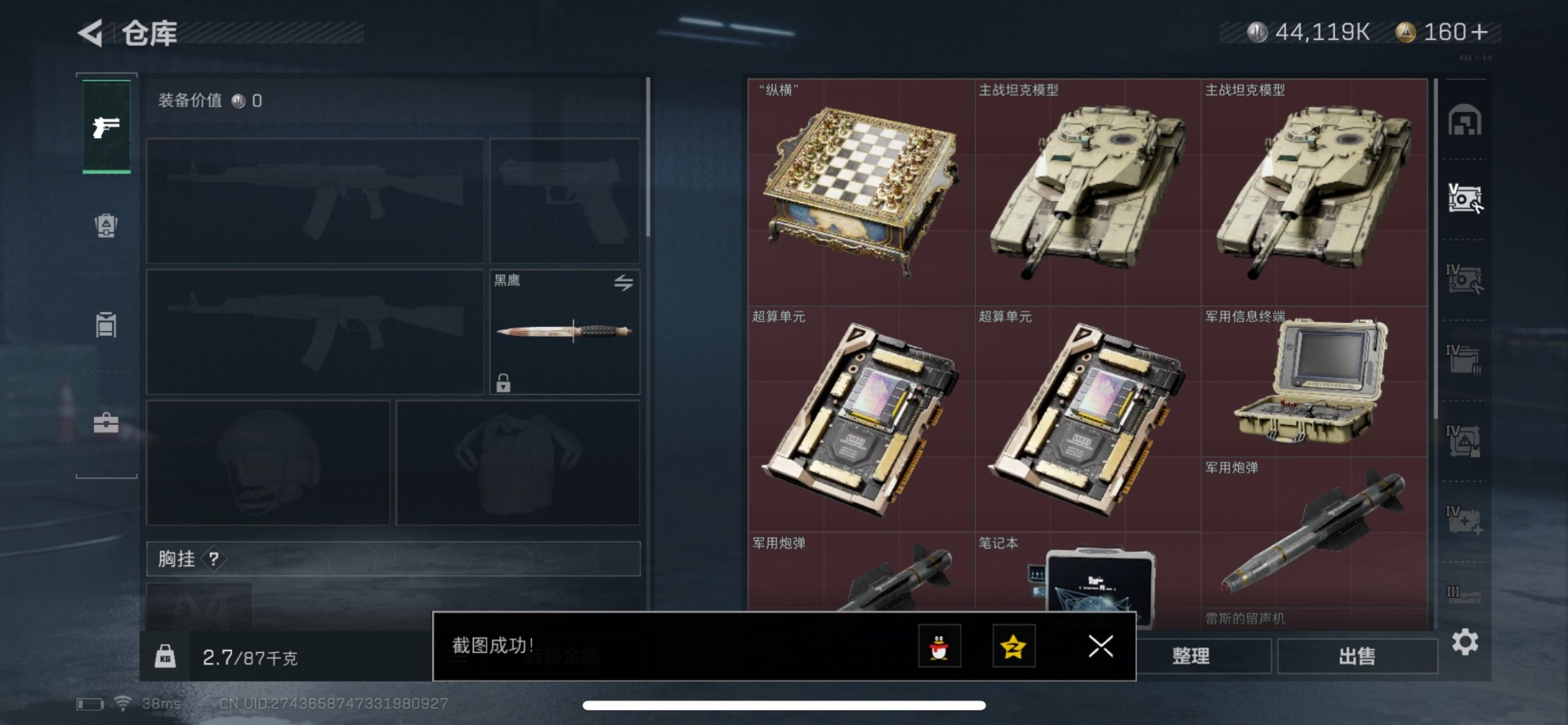 [11246775]总资产:139.3M 4传说枪械 哈夫币:44.119K 进阶安全箱(9.17到期) 可二次 可修改实名 烽火地带段位:三角洲巅峰 全面战场段位:无段位 传说武器皮肤:SCAR-H战斗步枪-铁艺苍穹,SMG45冲锋枪-骑士,复合弓-黑-天际线,勇士冲锋枪-能天使-午夜邮差