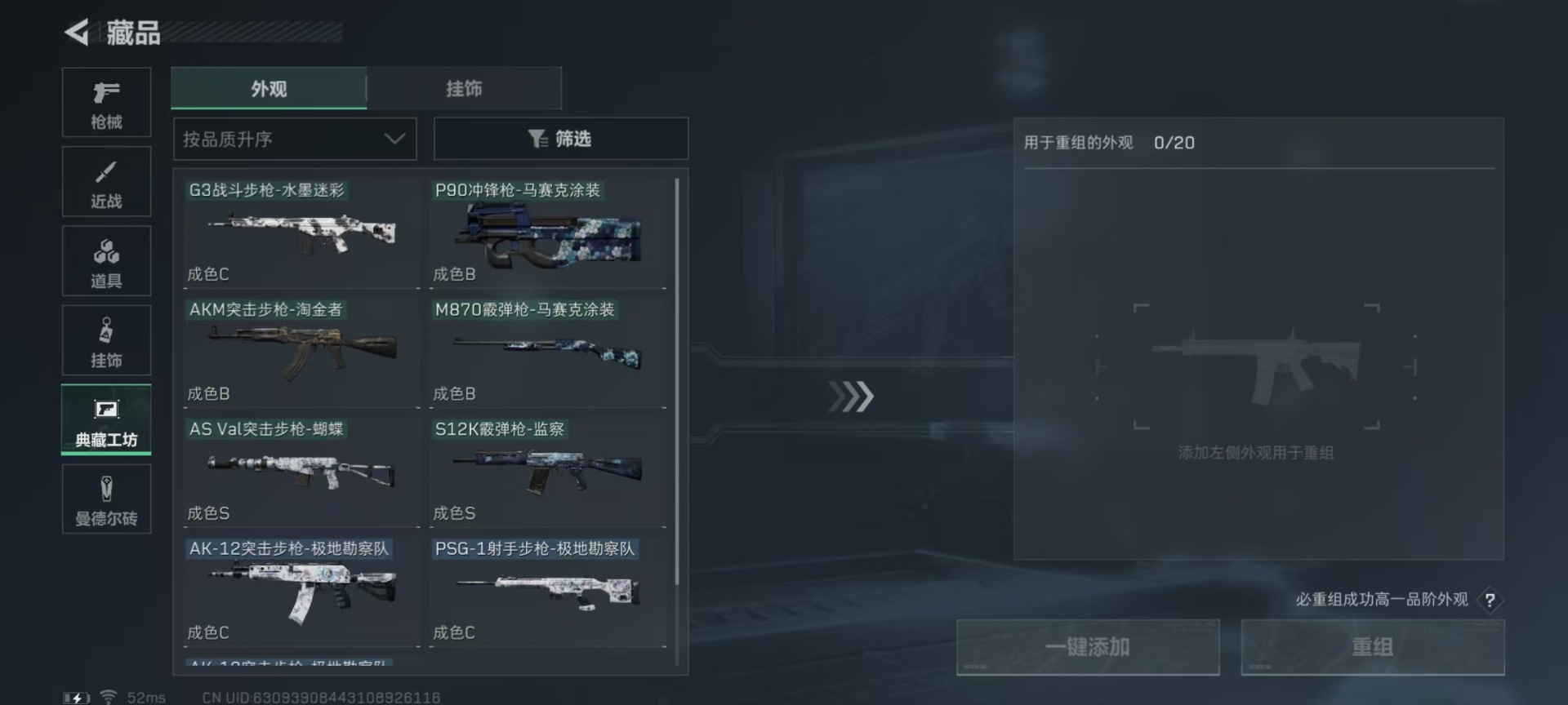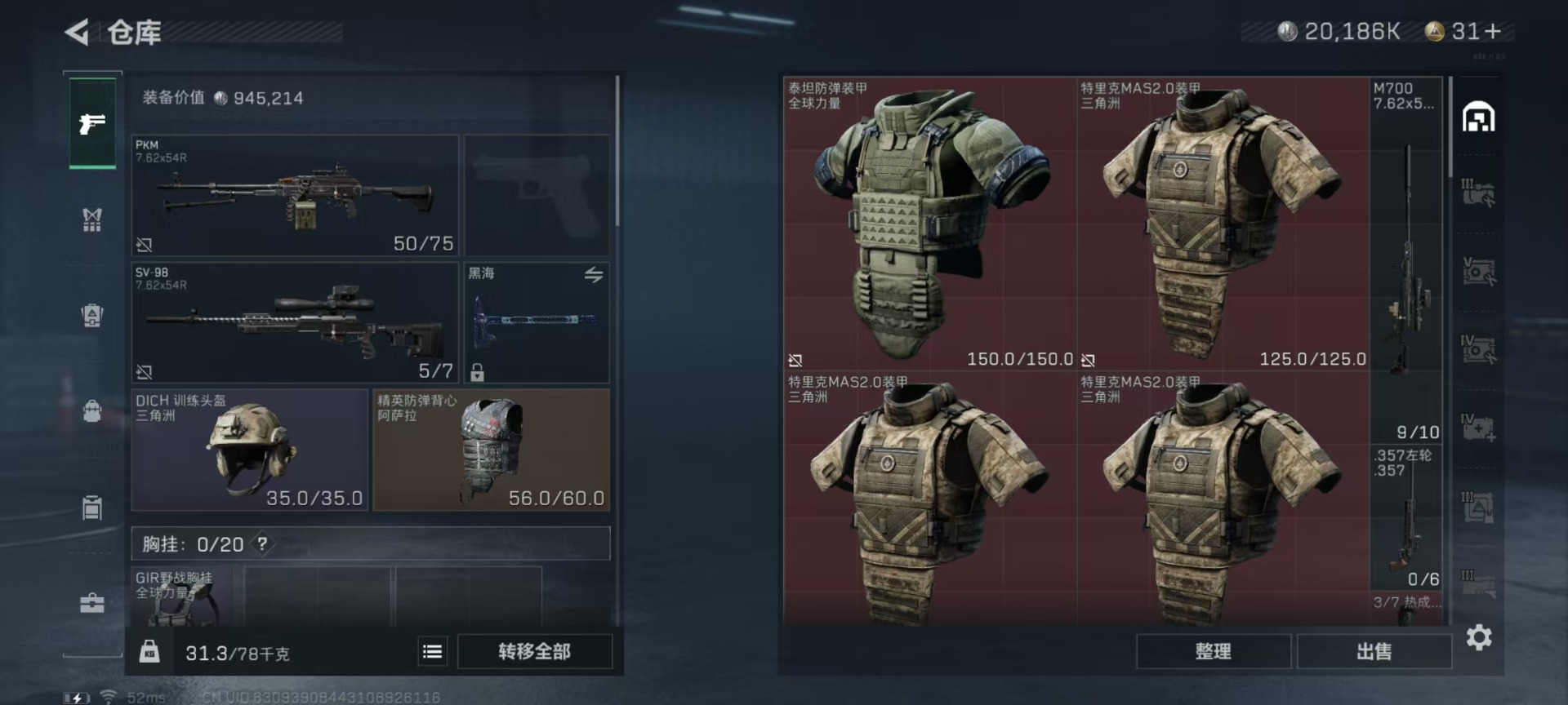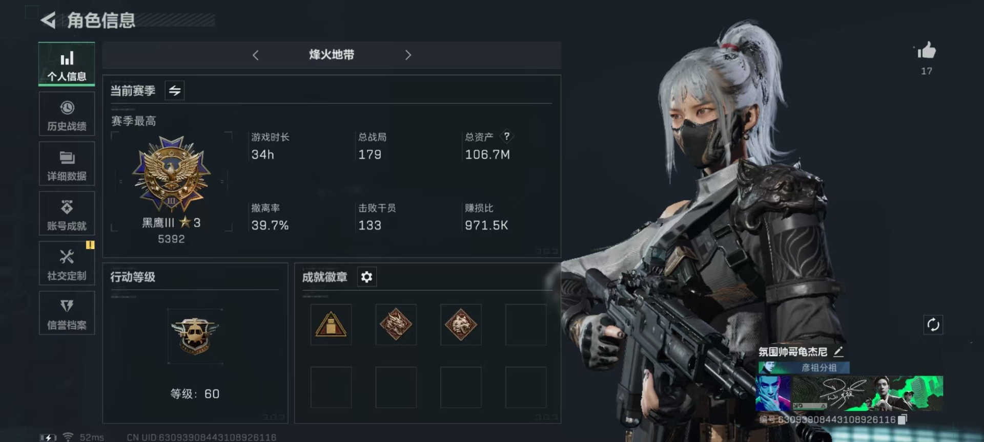 [11248545]可二次 可修改实名 实名:可修改 高级安全箱(2×3)9.15号到期 总资产:106.7 哈夫币:20.186 传说武器皮肤:近战-黑海,SCAR-H战斗步枪-水墨云图,SCAR-H战斗步枪-铁艺苍穹,AK-12突击步枪-夜鹰,SMG45冲锋枪-骑士,QJB201轻机枪-黑海,MP5冲锋枪-黑海,复合弓-黑-天际线,725双管霰弹枪-送葬人-无题密令,CAR-15突击步枪-黑鹰坠落 史诗武器皮肤:PKM通用机枪-荒野求生,SR-3M紧凑突击步枪-荒野求生,M16A4突击步枪-竞赛选手,SV-98狙击步枪-林中猎手,PSG-1射手步枪-无垢,SV-98狙击步枪-囚徒 干员外观:骇爪-水墨云图