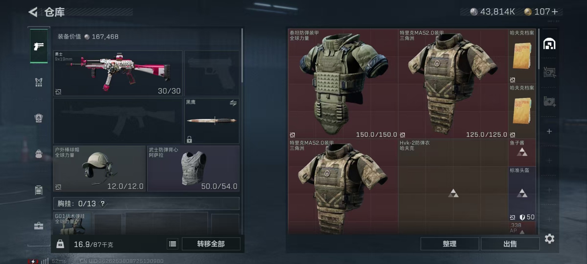 - [11883626]总资产:127.3M 16传说枪械 哈夫币:23.576K 顶级安全箱(3×3)9.15号到期 可二次 可修改实名 优质装备:顶级安全箱(3x3) 烽火地带段位:黑鹰 全面战场段位:列兵 传说武器皮肤:SR-25射手步枪-水墨云图,SCAR-H战斗步枪-铁艺苍穹,AK-12突击步枪-夜鹰,SMG45冲锋枪-骑士,Vector冲锋枪-狩猎时刻,G3战斗步枪-狩猎时刻,M16A4突击步枪-狩猎时刻,AK-12突击步枪-特斯拉线圈,CAR-15突击步枪-阿米娅,SR-3M紧凑突击步枪-特斯拉线圈,UZI冲锋枪-特斯拉线圈,勇士冲锋枪-能天使-午夜邮差,复合弓-黑-天际线,M4A1突击步枪-阿米娅,M7战斗步枪-维京,QBZ95-1突击步枪-破军