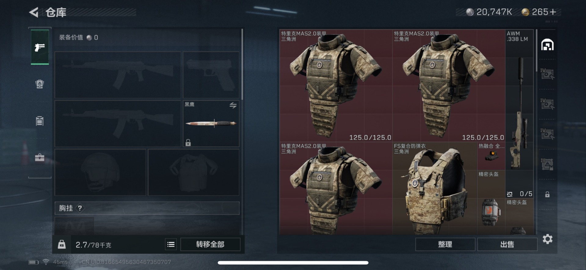 - [11650811]总资产:214.2M 3干员外观 1近战传说 12传说枪械 哈夫币:17.480K 可二次 可修改实名 优质装备:近战-黑海,顶级安全箱(3x3) 烽火地带段位:铂金 全面战场段位:上等兵 传说武器皮肤:UZI冲锋枪-特斯拉线圈,AWM狙击步枪-捞点薯条,93R-捞点薯条,AK-12突击步枪-特斯拉线圈,复合弓-黑-天际线,M4A1突击步枪-阿米娅,CAR-15突击步枪-阿米娅,AK-12突击步枪-夜鹰,M4A1突击步枪-蚀金玫瑰,MP5冲锋枪-黑海,QJB201轻机枪-黑海 史诗武器皮肤:SG552突击步枪-尖端治疗,QJB201轻机枪-Old Habits,M1014霰弹枪-林中猎手,PKM通用机枪-守夜人,AS Val突击步枪-尖端治疗,Ash-12战斗步枪-守夜人,MP5冲锋枪-深海恐惧,勇士冲锋枪-深海恐惧,AKM突击步枪-林中猎手,.357左轮-幸运时刻,M250通用机枪-囚徒,SV-98狙击步枪-林中猎手,PTR-32突击步枪-英雄,AS Val突击步枪-典狱官,SV-98狙击步枪-囚徒,SVD狙击步枪-暗夜猎手,SCAR-H战斗步枪-囚徒,MP7冲锋枪-无垢,SVD狙击步枪-荒野求生,PKM通用机枪-荒野求生,沙漠之鹰-曙光,Vector冲锋枪-阿萨拉文明,M700狙击步枪-竞技风,AUG突击步枪-战术迷彩 干员外观:红狼-蚀金玫瑰,无名-夜鹰,露娜-黑·天际线