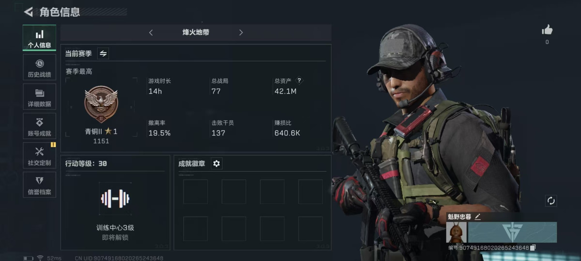 [11284429]总资产:42.1 2传说枪械 可二次 可修改实名 烽火地带段位:青铜 全面战场段位:无段位 哈夫币:10.177 传说武器皮肤:M4A1突击步枪-阿米娅,勇士冲锋枪-能天使-午夜邮差 史诗武器皮肤:M700狙击步枪-蝮蛇,SV-98狙击步枪-林中猎手,M250通用机枪-囚徒,Vector冲锋枪-阿萨拉文明
