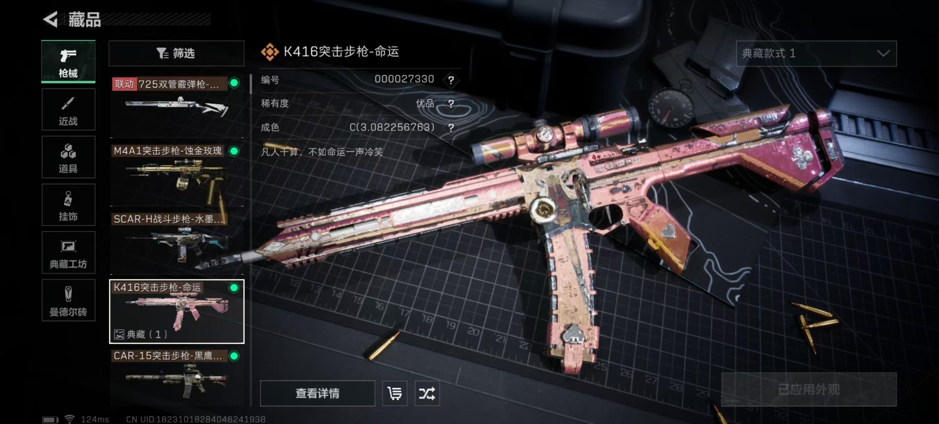 [11255313]可二次 可修改实名 实名:可修改 顶级安全箱9.1号到期 总资产:155 哈夫币:19.686 传说武器皮肤:K416突击步枪-命运(典藏),SCAR-H战斗步枪-水墨云图,SCAR-H战斗步枪-铁艺苍穹,AK-12突击步枪-夜鹰,G18-飞虎,SMG45冲锋枪-骑士,M4A1突击步枪-蚀金玫瑰,M7战斗步枪-神秘艺术,CAR-15突击步枪-黑鹰坠落 史诗武器皮肤:PSG-1射手步枪-无垢 干员外观:红狼-蚀金玫瑰,威龙-飞虎