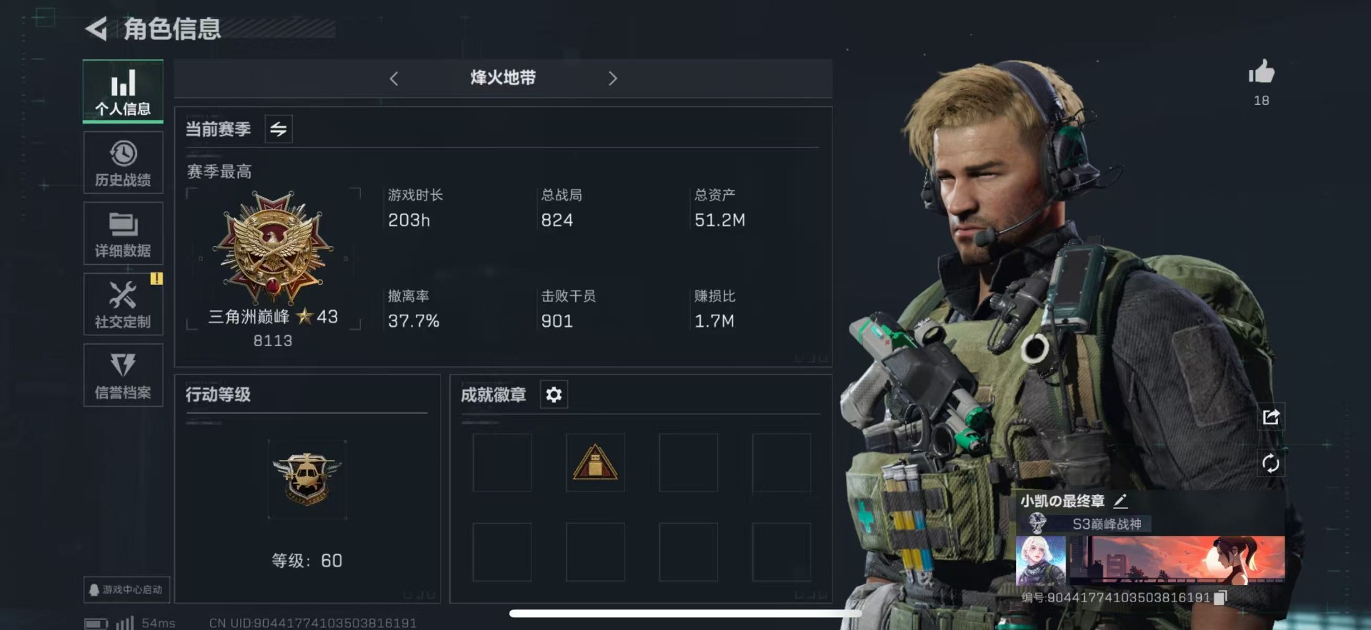 [11255225]可二次 可修改实名 高级安全箱(2×3)7.1号到期 实名:可修改 烽火地带段位:无段位 全面战场段位:无段位 总资产(M):51.2 哈夫币:1.600 传说武器皮肤:K416突击步枪-命运(典藏),SCAR-H战斗步枪-水墨云图,SR-25射手步枪-水墨云图,AS Val突击步枪-蛇年祥瑞,SCAR-H战斗步枪-铁艺苍穹,AK-12突击步枪-夜鹰,腾龙突击步枪-黎明警戒,AKM突击步枪-黎明警戒,G18-黎明警戒,SMG45冲锋枪-骑士,M4A1突击步枪-蚀金玫瑰,M7战斗步枪-怜悯,ASh-12战斗步枪-怜悯 史诗武器皮肤:QBZ95-1突击步枪-ACE,M4A1突击步枪-特勤执行,AUG突击步枪-特勤执行,Vector冲锋枪-红色彗星,AUG突击步枪-蝮蛇,M700狙击步枪-蝮蛇,PKM通用机枪-蝮蛇,SR-25射手步枪-尖端治疗,M1014霰弹枪-林中猎手,PKM通用机枪-守夜人,AS Val突击步枪-尖端治疗,M700狙击步枪-守夜人,SG552突击步枪-尖端治疗,PKM通用机枪-英雄,勇士冲锋枪-深海恐惧,SG552突击步枪-深海恐惧,AKM突击步枪-林中猎手,SVD狙击步枪-阿萨拉工艺,Vector冲锋枪-阿萨拉文明,93R-博士,QSZ92G-风林火山,S12K霰弹枪-曙光 干员外观:红狼-蚀金玫瑰