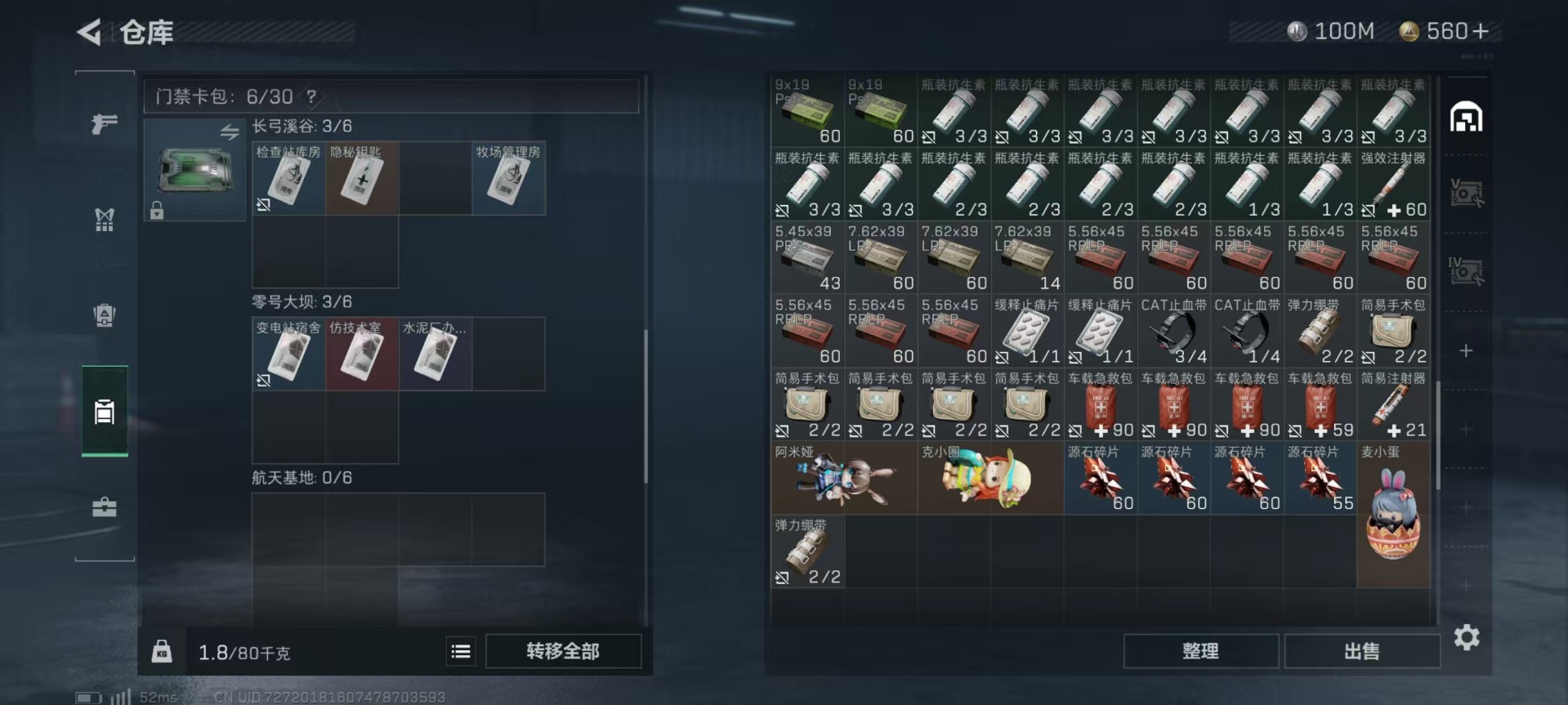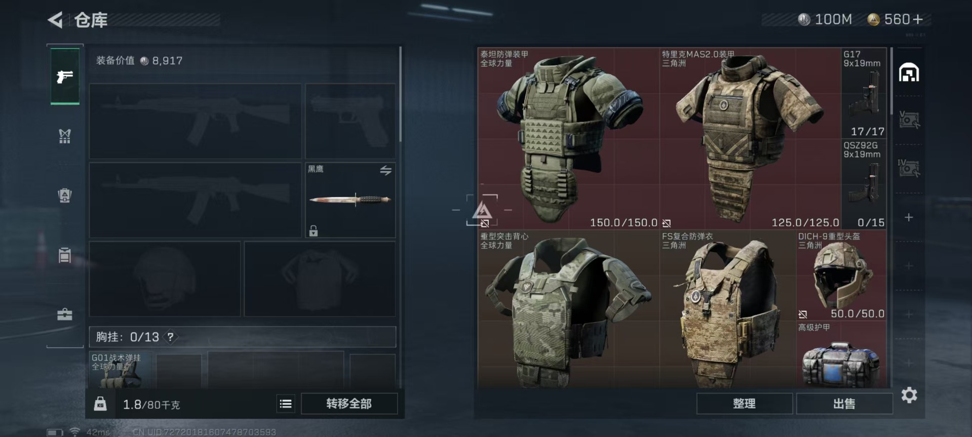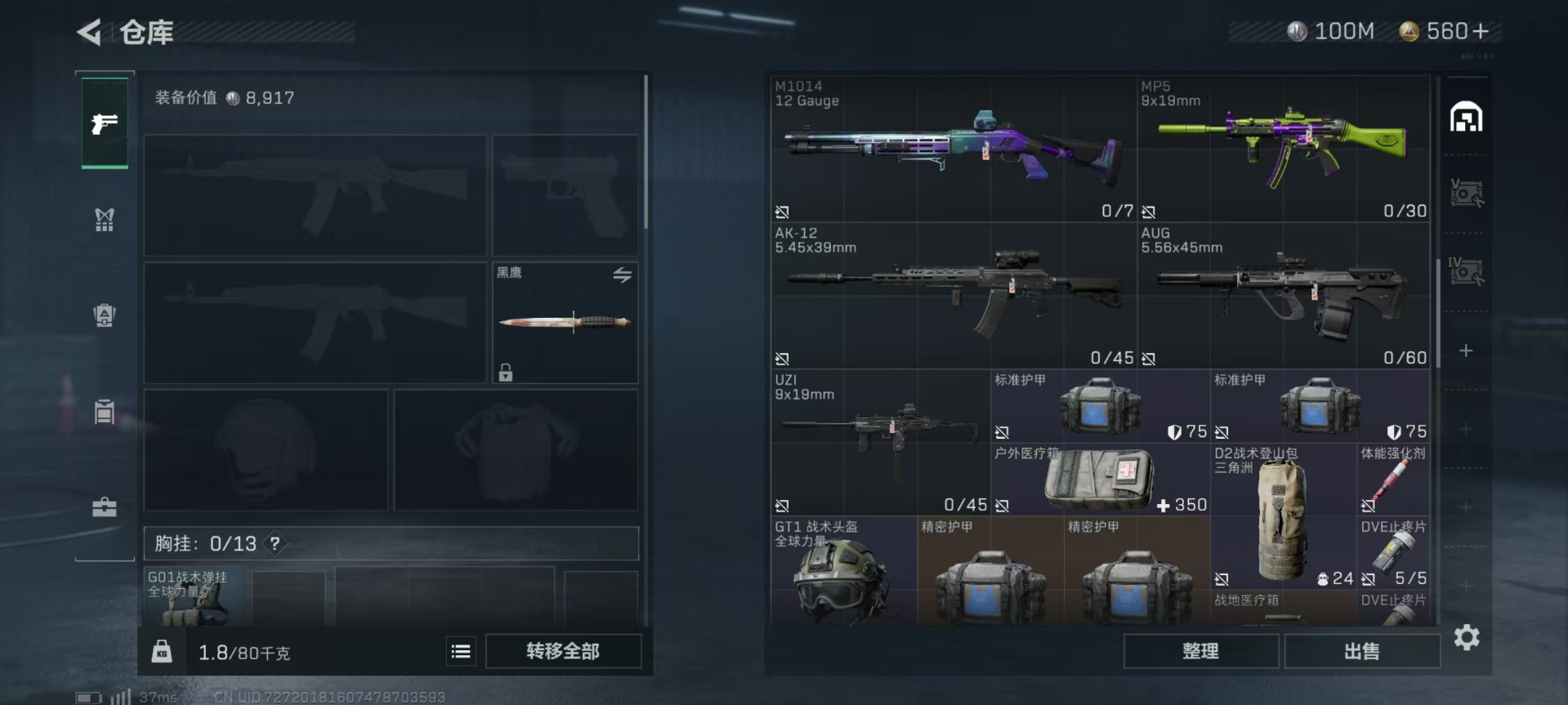 - [12295027]总资产:138.5M 1干员外观 11传说枪械 哈夫币:44.557K 可二次 可修改实名 烽火地带段位:铂金 全面战场段位:无段位 传说武器皮肤:SR-25射手步枪-水墨云图,SCAR-H战斗步枪-铁艺苍穹,SMG45冲锋枪-骑士,AWM狙击步枪-捞点薯条,腾龙突击步枪-捞点薯条,93R-捞点薯条,勇士冲锋枪-能天使-午夜邮差,Vector冲锋枪-能天使-午夜邮差,CAR-15突击步枪-阿米娅,AK-12突击步枪-夜鹰,M4A1突击步枪-蚀金玫瑰 干员外观:红狼-蚀金玫瑰