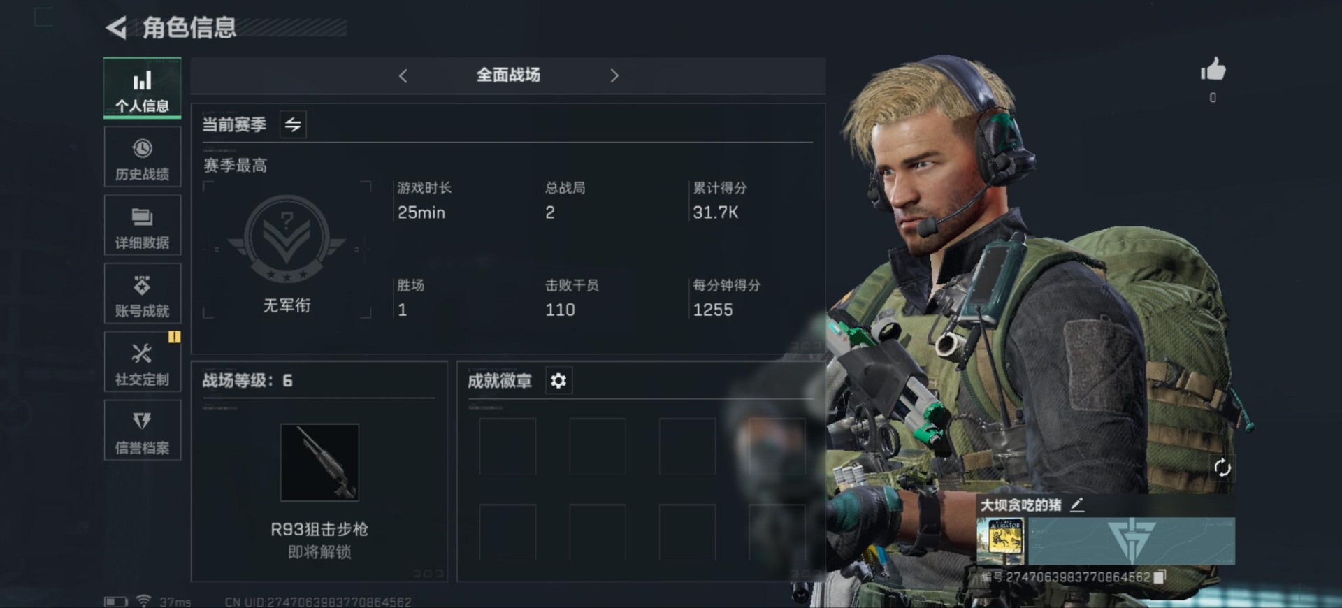 [11295696]总资产:40.1M 7传说枪械 哈夫币:1.939K 进阶安全箱(2×2)9.15号到期 可二次 可修改实名 烽火地带段位:青铜 全面战场段位:无段位 传说武器皮肤:M4A1突击步枪-阿米娅,CAR-15突击步枪-阿米娅,复合弓-黑-天际线,AWM狙击步枪-捞点薯条,腾龙突击步枪-捞点薯条,93R-捞点薯条,勇士冲锋枪-能天使-午夜邮差