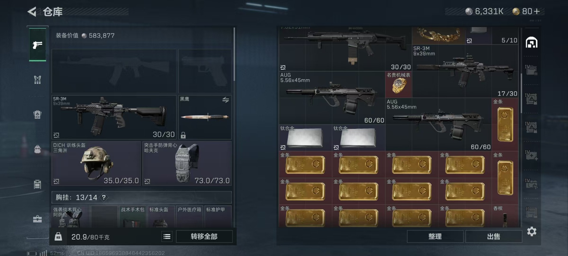 - [12088671]总资产:239.5 7传说枪械 顶级安全箱(9.17到期) 可二次 可修改实名 烽火地带段位:钻石 全面战场段位:上等兵 哈夫币:53.282 传说武器皮肤:QJB201轻机枪-风林火山,SR-25射手步枪-水墨云图,SMG45冲锋枪-骑士,复合弓-黑-天际线,CAR-15突击步枪-阿米娅,725双管霰弹枪-送葬人-无题密令,M4A1突击步枪-蚀金玫瑰 史诗武器皮肤:SR-3M紧凑突击步枪-英雄,AUG突击步枪-蝮蛇,PKM通用机枪-蝮蛇,SR-25射手步枪-战场英杰,PKM通用机枪-荒野求生,MP5冲锋枪-深海恐惧,SR-3M紧凑突击步枪-荒野求生,勇士冲锋枪-深海恐惧,SG552突击步枪-深海恐惧,AKM突击步枪-林中猎手,.357左轮-幸运时刻,SVD狙击步枪-暗夜猎手,M16A4突击步枪-竞赛选手,SVD狙击步枪-荒野求生,M1014霰弹枪-林中猎手,SV-98狙击步枪-林中猎手,PTR-32突击步枪-英雄,PSG-1射手步枪-无垢,AS Val突击步枪-典狱官,M250通用机枪-囚徒,SV-98狙击步枪-囚徒,腾龙突击步枪-无垢,MP7冲锋枪-无垢,QBZ95-1突击步枪-曙光,沙漠之鹰-曙光,SVD狙击步枪-阿萨拉工艺,PKM通用机枪-英雄,M700狙击步枪-竞技风