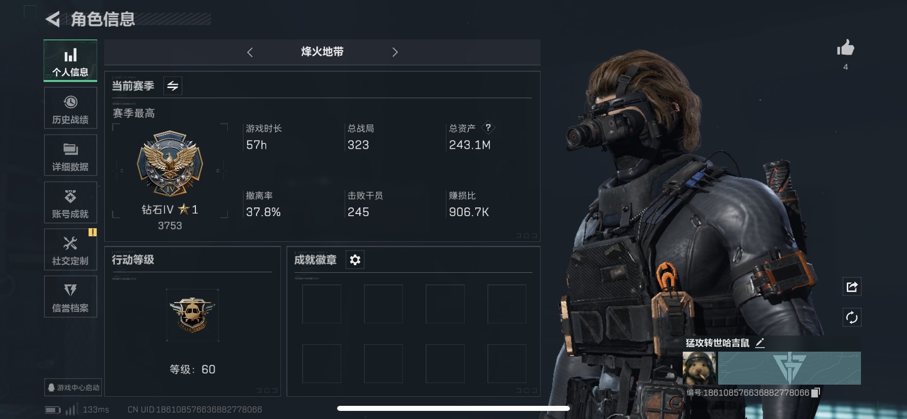 - [11523953]总资产:239.5 7传说枪械 顶级安全箱(9.17到期) 可二次 可修改实名 烽火地带段位:钻石 全面战场段位:上等兵 哈夫币:53.282 传说武器皮肤:QJB201轻机枪-风林火山,SR-25射手步枪-水墨云图,SMG45冲锋枪-骑士,复合弓-黑-天际线,CAR-15突击步枪-阿米娅,725双管霰弹枪-送葬人-无题密令,M4A1突击步枪-蚀金玫瑰 史诗武器皮肤:SR-3M紧凑突击步枪-英雄,AUG突击步枪-蝮蛇,PKM通用机枪-蝮蛇,SR-25射手步枪-战场英杰,PKM通用机枪-荒野求生,MP5冲锋枪-深海恐惧,SR-3M紧凑突击步枪-荒野求生,勇士冲锋枪-深海恐惧,SG552突击步枪-深海恐惧,AKM突击步枪-林中猎手,.357左轮-幸运时刻,SVD狙击步枪-暗夜猎手,M16A4突击步枪-竞赛选手,SVD狙击步枪-荒野求生,M1014霰弹枪-林中猎手,SV-98狙击步枪-林中猎手,PTR-32突击步枪-英雄,PSG-1射手步枪-无垢,AS Val突击步枪-典狱官,M250通用机枪-囚徒,SV-98狙击步枪-囚徒,腾龙突击步枪-无垢,MP7冲锋枪-无垢,QBZ95-1突击步枪-曙光,沙漠之鹰-曙光,SVD狙击步枪-阿萨拉工艺,PKM通用机枪-英雄,M700狙击步枪-竞技风