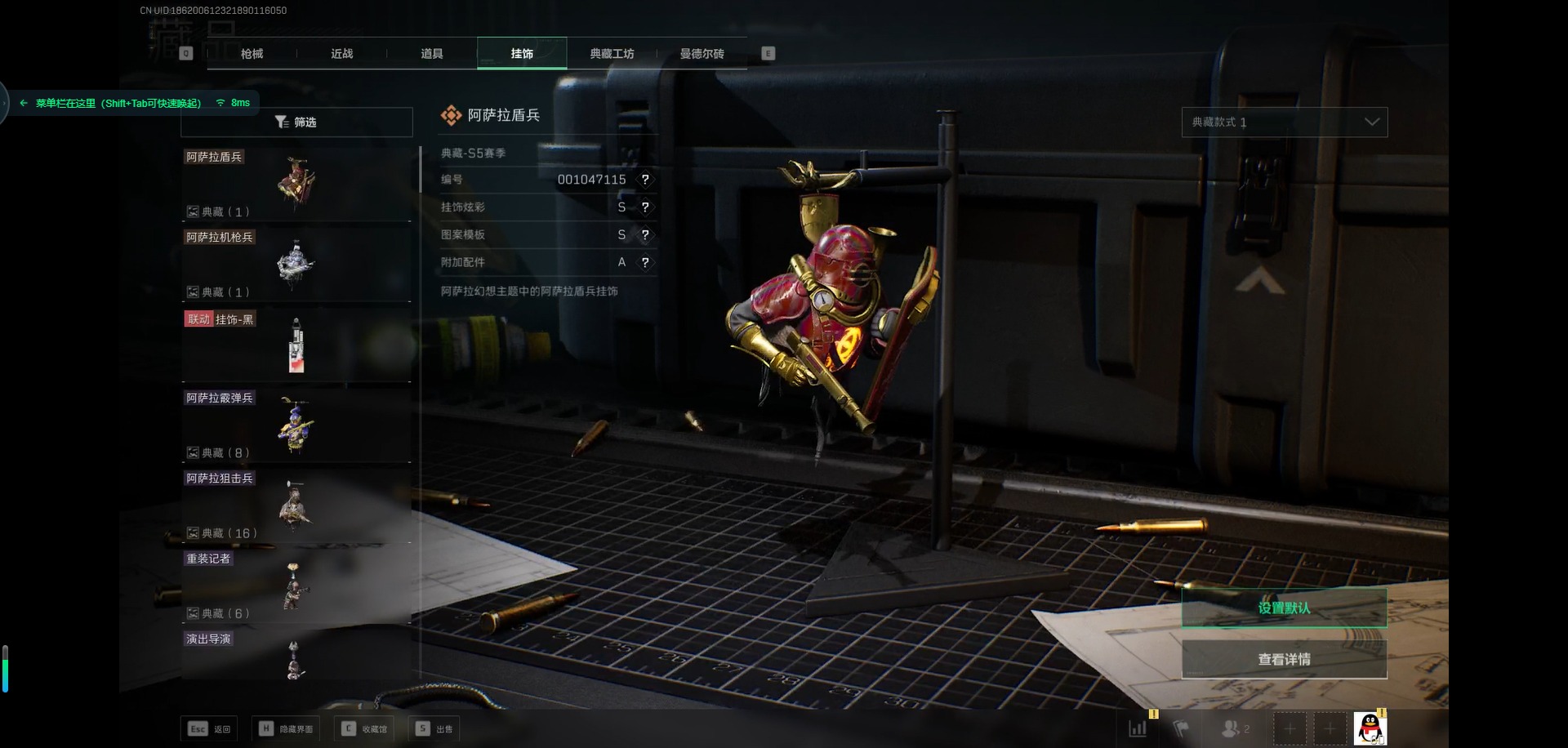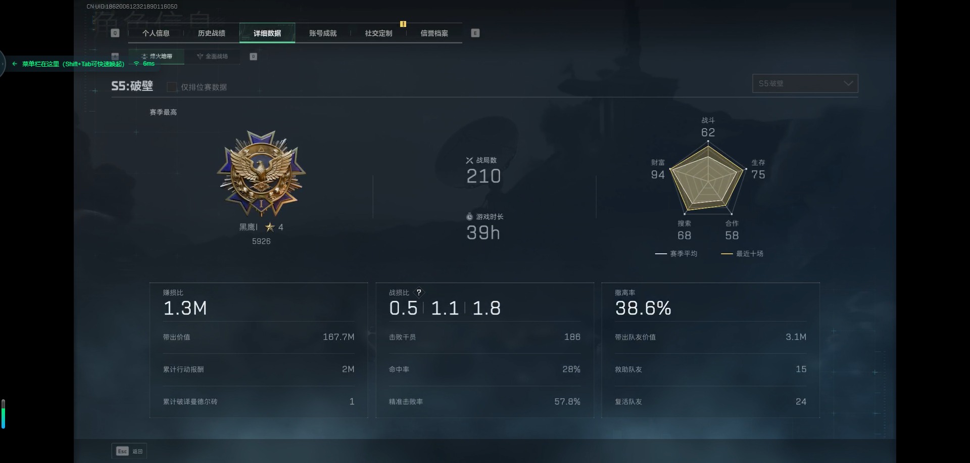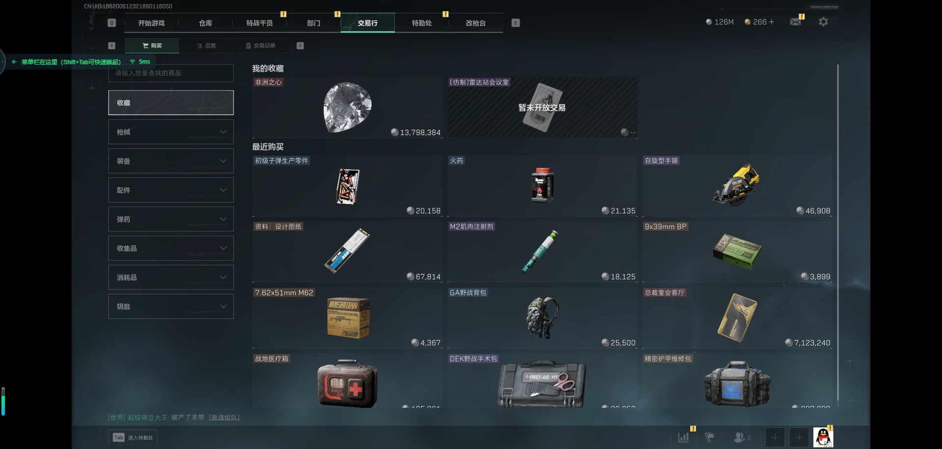 [11251776]总资产:205.7M 2干员外观 5传说枪械 哈夫币:126K 顶级安全箱(9.17到期) 可二次 可修改实名 优质装备:顶级安全箱(3x3),非洲之心 烽火地带段位:黑鹰 全面战场段位:上等兵 传说武器皮肤:AK-12突击步枪-夜鹰,SMG45冲锋枪-骑士,复合弓-黑-天际线,勇士冲锋枪-能天使-午夜邮差,CAR-15突击步枪-黑鹰坠落 史诗武器皮肤:PKM通用机枪-蝮蛇,G3战斗步枪-战场英杰,SR-25射手步枪-尖端治疗,AS Val突击步枪-尖端治疗,SG552突击步枪-尖端治疗,Ash-12战斗步枪-守夜人,MP5冲锋枪-深海恐惧,勇士冲锋枪-深海恐惧,AKM突击步枪-林中猎手,.357左轮-幸运时刻,SVD狙击步枪-暗夜猎手,M16A4突击步枪-竞赛选手,PKM通用机枪-守夜人,M1014霰弹枪-林中猎手,SV-98狙击步枪-林中猎手,M250通用机枪-囚徒,SV-98狙击步枪-囚徒,QBZ95-1突击步枪-曙光,Vector冲锋枪-阿萨拉文明,SVD狙击步枪-阿萨拉工艺,S12K霰弹枪-曙光,PKM通用机枪-英雄,M700狙击步枪-竞技风 干员外观:无名-夜鹰,露娜-黑·天际线