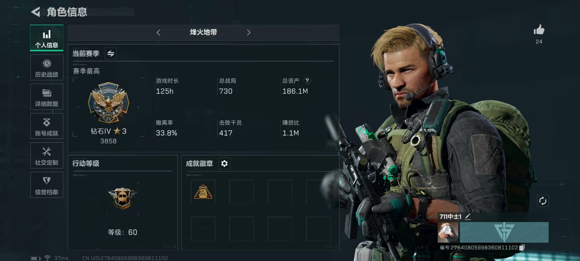 [11253466]可二次 可修改实名 实名:可修改 顶级安全箱(9.17到期) 烽火地带段位:钻石 全面战场段位:无段位 总资产:186.1 哈夫币:3.402 传说武器皮肤:AK-12突击步枪-夜鹰,复合弓-黑-天际线,725双管霰弹枪-送葬人-无题密令 史诗武器皮肤:勇士冲锋枪-私人定制(典藏),SR-25射手步枪-尖端治疗,PKM通用机枪-荒野求生,AS Val突击步枪-尖端治疗,M700狙击步枪-守夜人,Ash-12战斗步枪-守夜人,SR-3M紧凑突击步枪-荒野求生,AKM突击步枪-林中猎手,M16A4突击步枪-竞赛选手,PKM通用机枪-守夜人,SVD狙击步枪-荒野求生,M1014霰弹枪-林中猎手,SV-98狙击步枪-林中猎手,PTR-32突击步枪-英雄,PSG-1射手步枪-无垢,M250通用机枪-囚徒,QBZ95-1突击步枪-曙光 干员外观:无名-夜鹰,露娜-黑·天际线