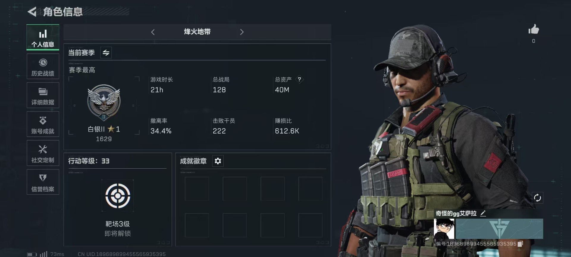 [11297657]总资产:40M 4传说枪械 哈夫币:38.165K 可二次 可修改实名 烽火地带段位:白银 全面战场段位:无段位 传说武器皮肤:M16A4突击步枪-狩猎时刻,M4A1突击步枪-阿米娅,Vector冲锋枪-狩猎时刻,G3战斗步枪-狩猎时刻