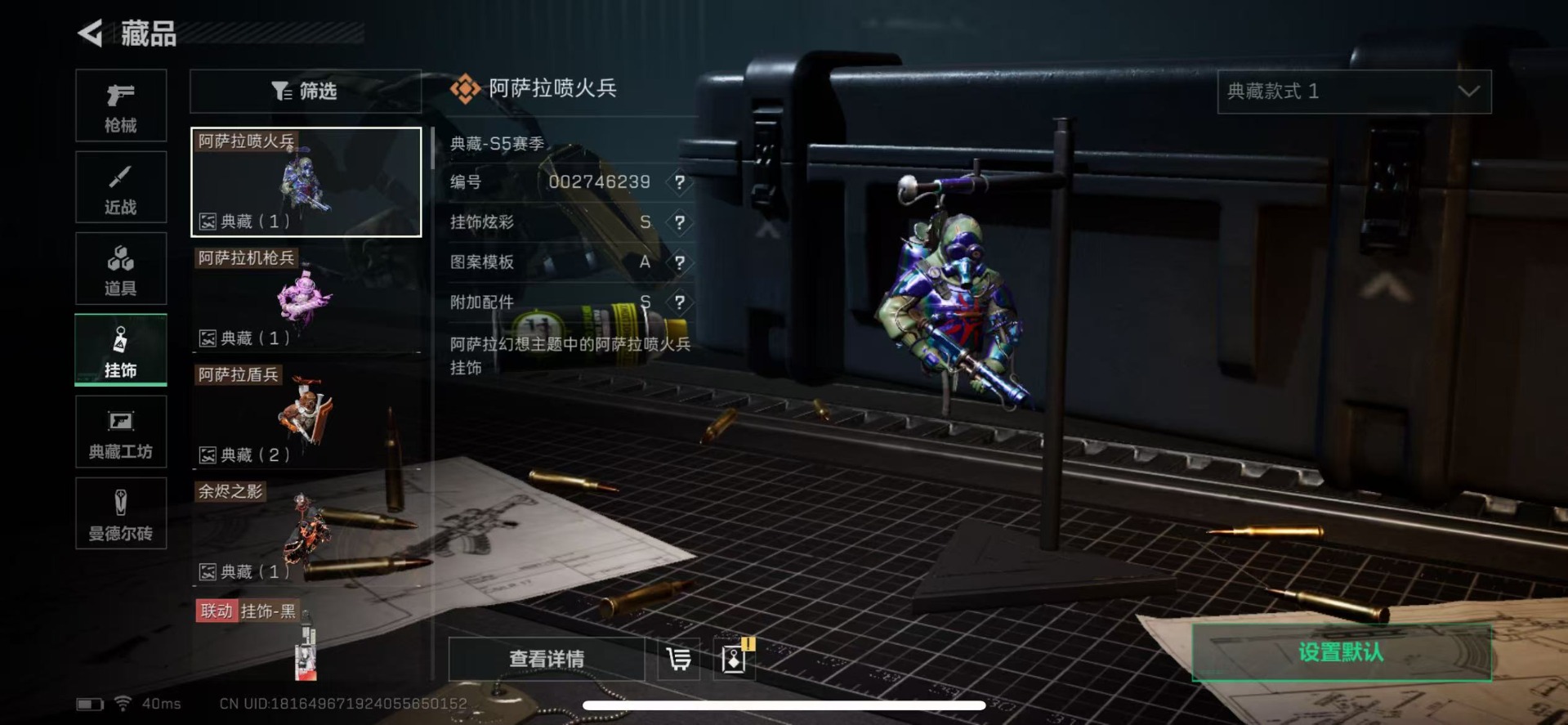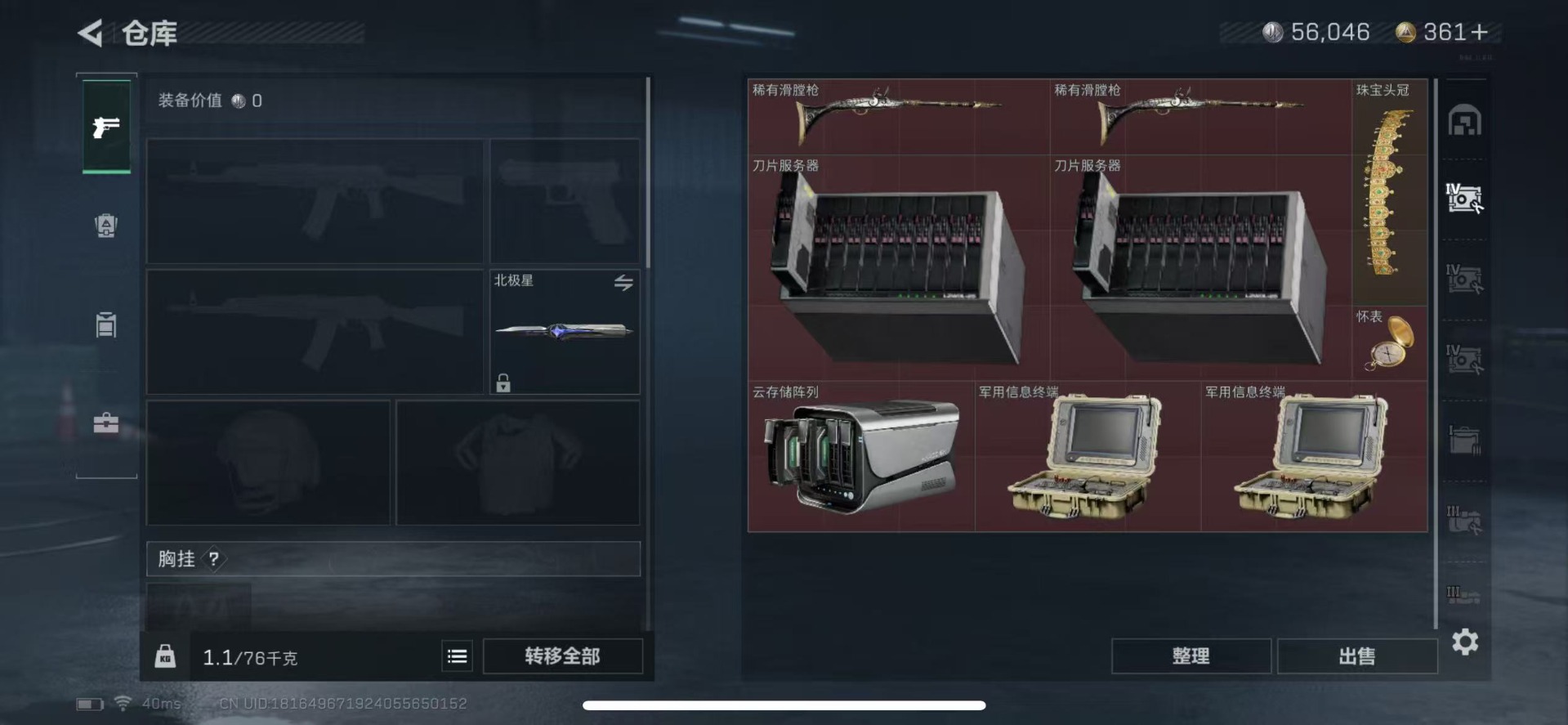 - [11547774]总资产:134.3M 1干员外观 2传说枪械 哈夫币:103K 可二次 可修改实名 烽火地带段位:青铜 全面战场段位:无段位 传说武器皮肤:CAR-15突击步枪-阿米娅,勇士冲锋枪-能天使-午夜邮差 史诗武器皮肤:AKM突击步枪-林中猎手,M1014霰弹枪-林中猎手,SV-98狙击步枪-林中猎手,M250通用机枪-囚徒,SV-98狙击步枪-囚徒 干员外观:露娜-黑·天际线