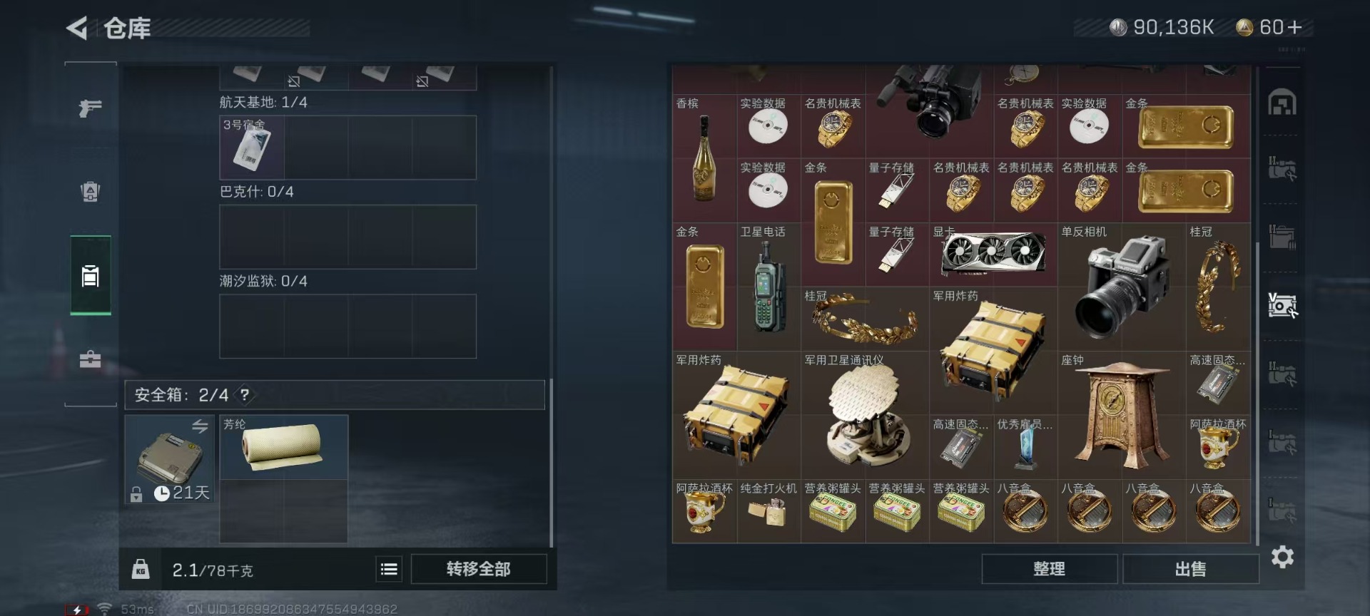 [11297816]总资产:140.9M 1传说枪械 哈夫币:90.136K 进阶安全箱(2×2)9.15号到期 可二次 可修改实名 烽火地带段位:青铜 全面战场段位:列兵 传说武器皮肤:M4A1突击步枪-阿米娅