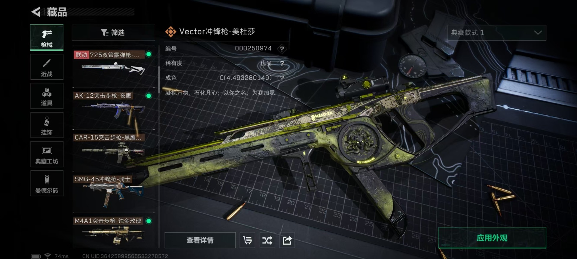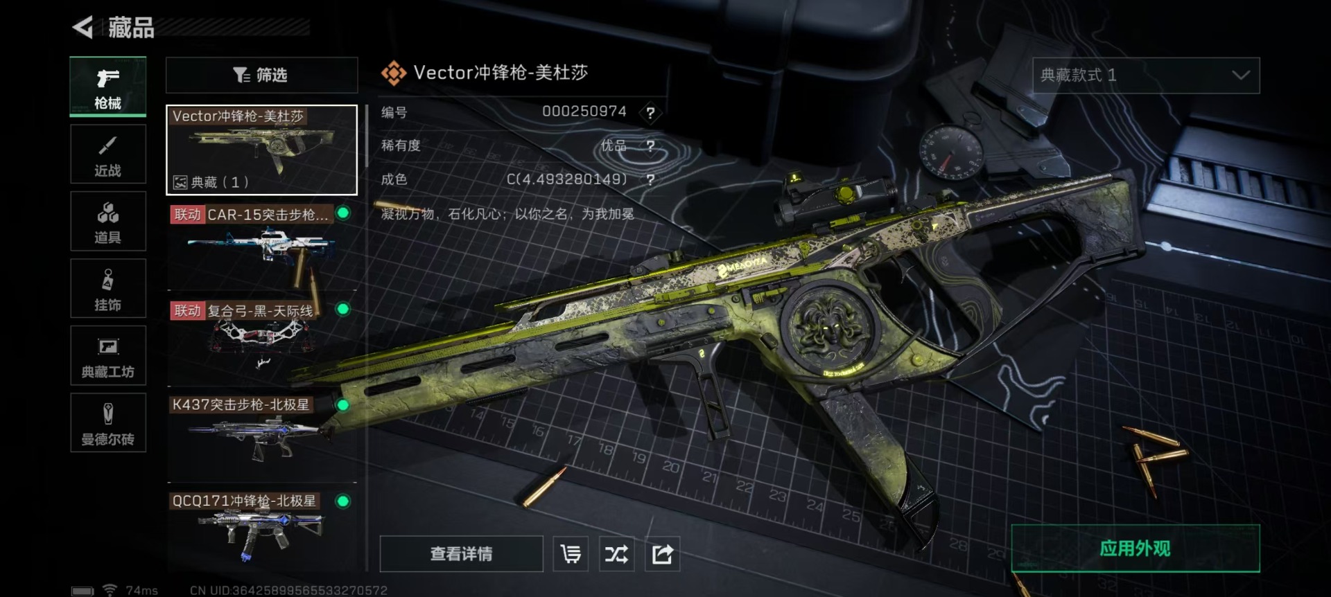 - [12014813]V4 134英雄武器 1英雄角色 可二次 可修改实名 优质装备:TAC-慈,M4A1-仲达,王者之影,M200-幻神,CZ75-策,CZS2-仲康 v武器:沙鹰-神兵修罗,M14EBR-拂影,M4A1-猎神,SCAR-探星者,打击者-天神,AN94-赳赳秦师,蝴蝶刀-天神,VSK-94-九黎兵主觉醒,QBB95-再战涿鹿,M16-恶魔,AK47-雅韵青花,KSG-孟获,CBJ-MS-毒蜂,M4A1-太白诗仙,丛林匕首-庆龙觉醒,柯尔特-仲达,唐刀-大唐荣耀,加特林-堡垒,AWM-天使,MR1-幽暗骑士,CZS2-血月,手斧-机械迷城,M4A1-堕天神,QSZ92-冰魂觉醒,MAC-10-孟获,烈焰刀,烈焰弓,G3A3-衍神兵,M14EBR-葫芦山庄,QBZ97-浩瀚征途,DDM4-PDW-星际宇航觉醒,环刃-炫光掠影觉醒,王者之誉,AWM-大湾溢彩,双持沙鹰-元让,沙鹰-宇航兔兔,气勇胆烈戟,AWM-指南针,AWM-指南针觉醒,AK47-木兰,左轮-卧龙觉醒,甩棍-卧龙觉醒,SCAR-心动PICK,破邪蛇棍觉醒,GLOCK18-猎神,马来剑-耀金伯爵,女皇利刃-铁胆虎魄,龙爪手-鼓龙,蟒蛇-鼓龙,AK47-火麒麟,M4A1-雷神,AK47-无影,M4A1-黑骑士,AK12-天启,剑齿虎-炫彩,加特林-炼狱,AWM-天龙,巴雷特-毁灭,巴雷特-极光,98K-黑骑士,AK47-猩红传说,AK47-燎天净火,M4A1-赛博雷神,AK47-血武士,M4A1-海骑士,MK47-云舞,SCAR-幽暗骑士觉醒,QBZ03-金色蔷薇,AK47-黑鲨,QBZ03-死神,M4A1-破空冰刃,M4A1-心动次元觉醒,神罚战斧,马来剑-毁灭,屠龙,地狱火,汤姆逊-烈龙,双持斯泰尔-天使,沙鹰-修罗,USP-神罚,沙鹰-天神 王者武器:王者之霆