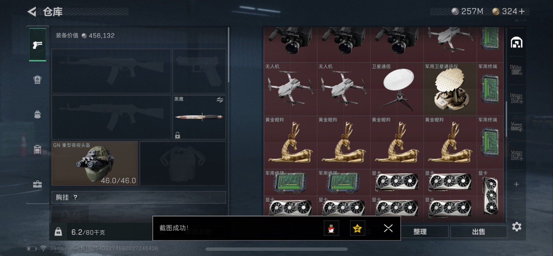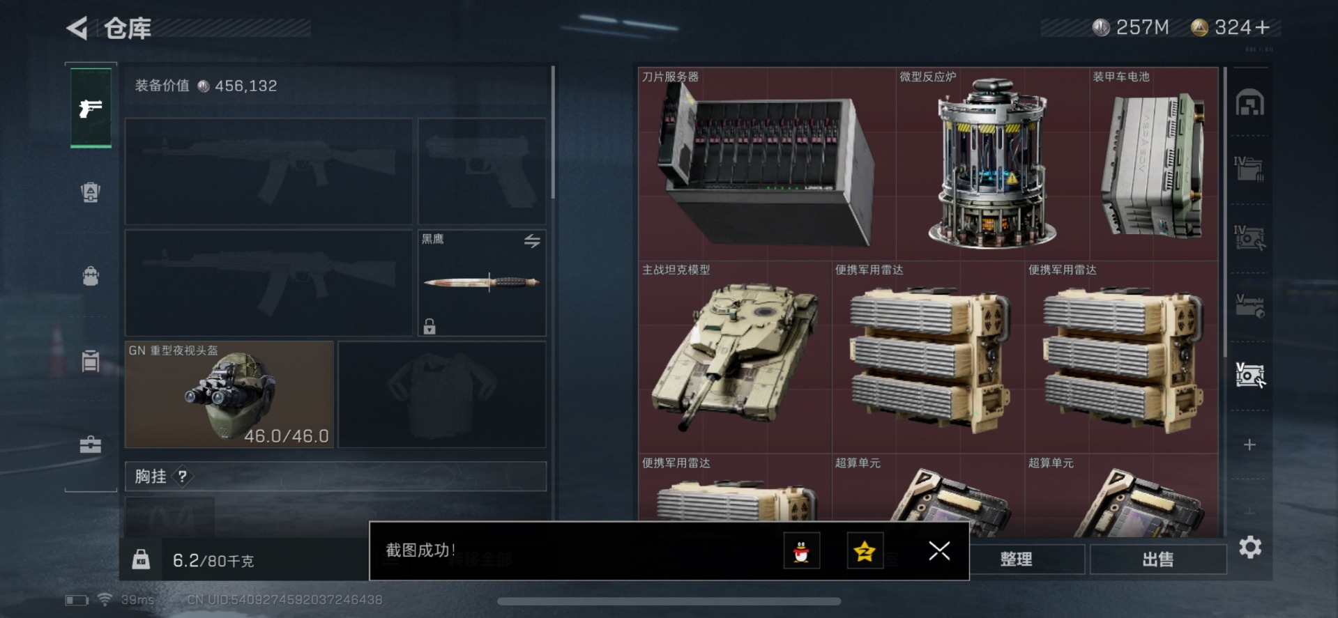 [11249391]总资产:589.4M 5传说枪械 哈夫币:257K 可二次 可修改实名 优质装备:顶级安全箱(3x3) 烽火地带段位:铂金 全面战场段位:无段位 传说武器皮肤:M4A1突击步枪-阿米娅,CAR-15突击步枪-阿米娅,AWM狙击步枪-捞点薯条,腾龙突击步枪-捞点薯条,93R-捞点薯条