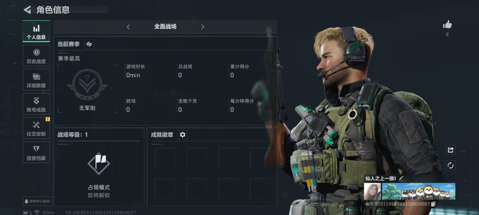 [11253781]总资产:130.6 可二次 可修改实名 烽火地带段位:钻石 全面战场段位:无段位 哈夫币:100 史诗武器皮肤:M16A4突击步枪-竞赛选手,SV-98狙击步枪-林中猎手
