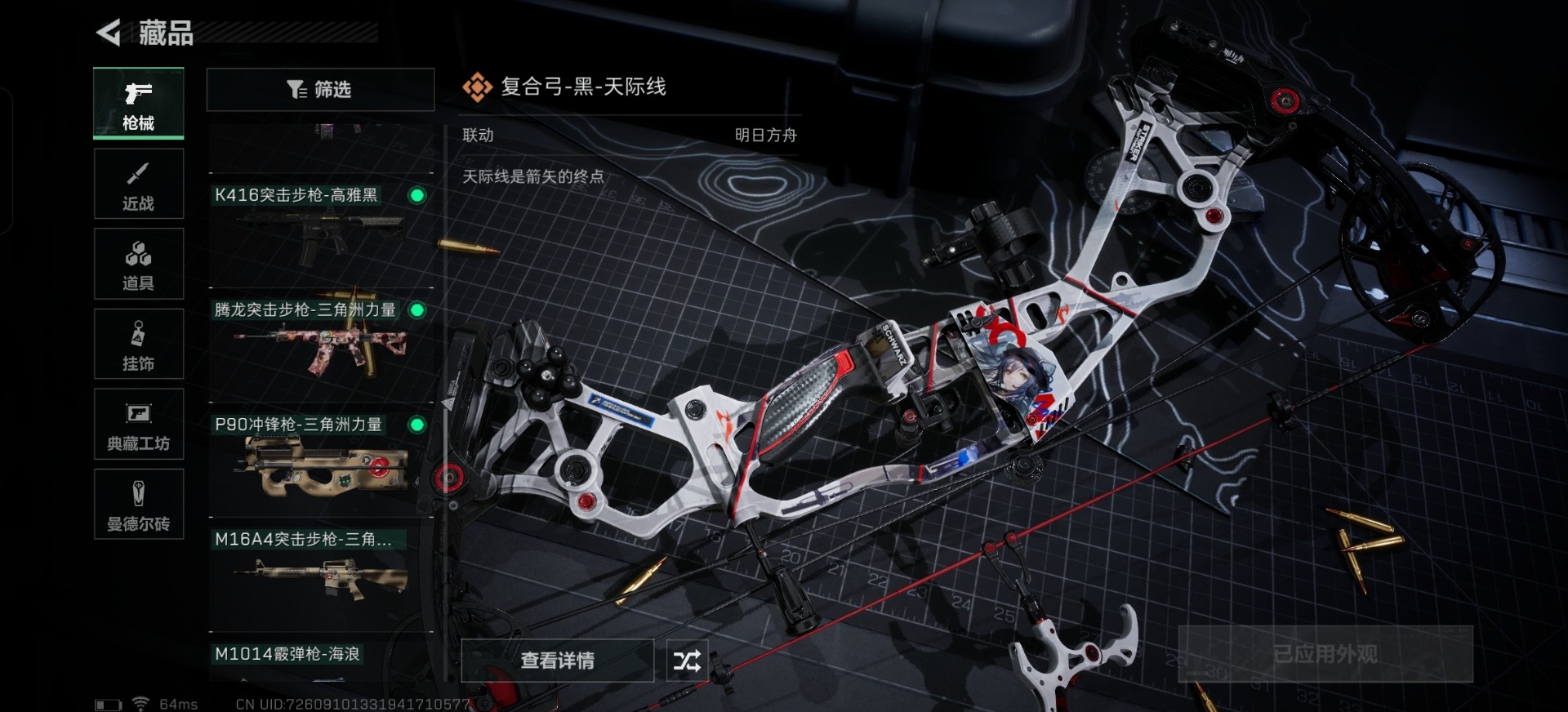 - [11445483]总资产:405.8M 3干员外观 1近战传说 16传说枪械 哈夫币:76.062K 顶级安全箱(3×3)9.15号到期 可二次 可修改实名 优质装备:近战-黑海,顶级安全箱(3x3) 烽火地带段位:三角洲巅峰 全面战场段位:无段位 传说武器皮肤:SCAR-H战斗步枪-铁艺苍穹,AK-12突击步枪-夜鹰,SMG45冲锋枪-骑士,G3战斗步枪-流光铂影,M4A1突击步枪-阿米娅,CAR-15突击步枪-阿米娅,复合弓-黑-天际线,AK-12突击步枪-特斯拉线圈,SR-3M紧凑突击步枪-特斯拉线圈,UZI冲锋枪-特斯拉线圈,勇士冲锋枪-能天使-午夜邮差,725双管霰弹枪-送葬人-无题密令,MP5冲锋枪-黑海,QJB201轻机枪-黑海,CAR-15突击步枪-黑鹰坠落 史诗武器皮肤:QBZ95-1突击步枪-ACE,M4A1突击步枪-特勤执行,AUG突击步枪-特勤执行,Vector冲锋枪-红色彗星,PTR-32战斗步枪-ACE,SKS射手步枪-ACE,PKM通用机枪-蝮蛇,G3战斗步枪-战场英杰,Ash-12战斗步枪-守夜人,M16A4突击步枪-竞赛选手,PKM通用机枪-守夜人,AS Val突击步枪-尖端治疗,M700狙击步枪-守夜人,SG552突击步枪-尖端治疗,SR-25射手步枪-尖端治疗,PKM通用机枪-荒野求生,勇士冲锋枪-深海恐惧,SG552突击步枪-深海恐惧,AKM突击步枪-林中猎手,.357左轮-幸运时刻,SR-3M紧凑突击步枪-荒野求生,M1014霰弹枪-林中猎手,QCQ171冲锋枪-禁卫,SV-98狙击步枪-林中猎手,PTR-32突击步枪-英雄,SVD狙击步枪-荒野求生,AS Val突击步枪-典狱官,M250通用机枪-囚徒,SCAR-H战斗步枪-囚徒,腾龙突击步枪-无垢,MP7冲锋枪-无垢,PSG-1射手步枪-无垢,M14射手步枪-黑鹰坠落,M14射手步枪-禁卫,QBZ95-1突击步枪-曙光,沙漠之鹰-曙光,SVD狙击步枪-阿萨拉工艺,S12K霰弹枪-曙光,M7战斗步枪-禁卫,PKM通用机枪-英雄,AUG突击步枪-战术迷彩 干员外观:威龙-壮志凌云,无名-夜鹰,露娜-黑·天际线