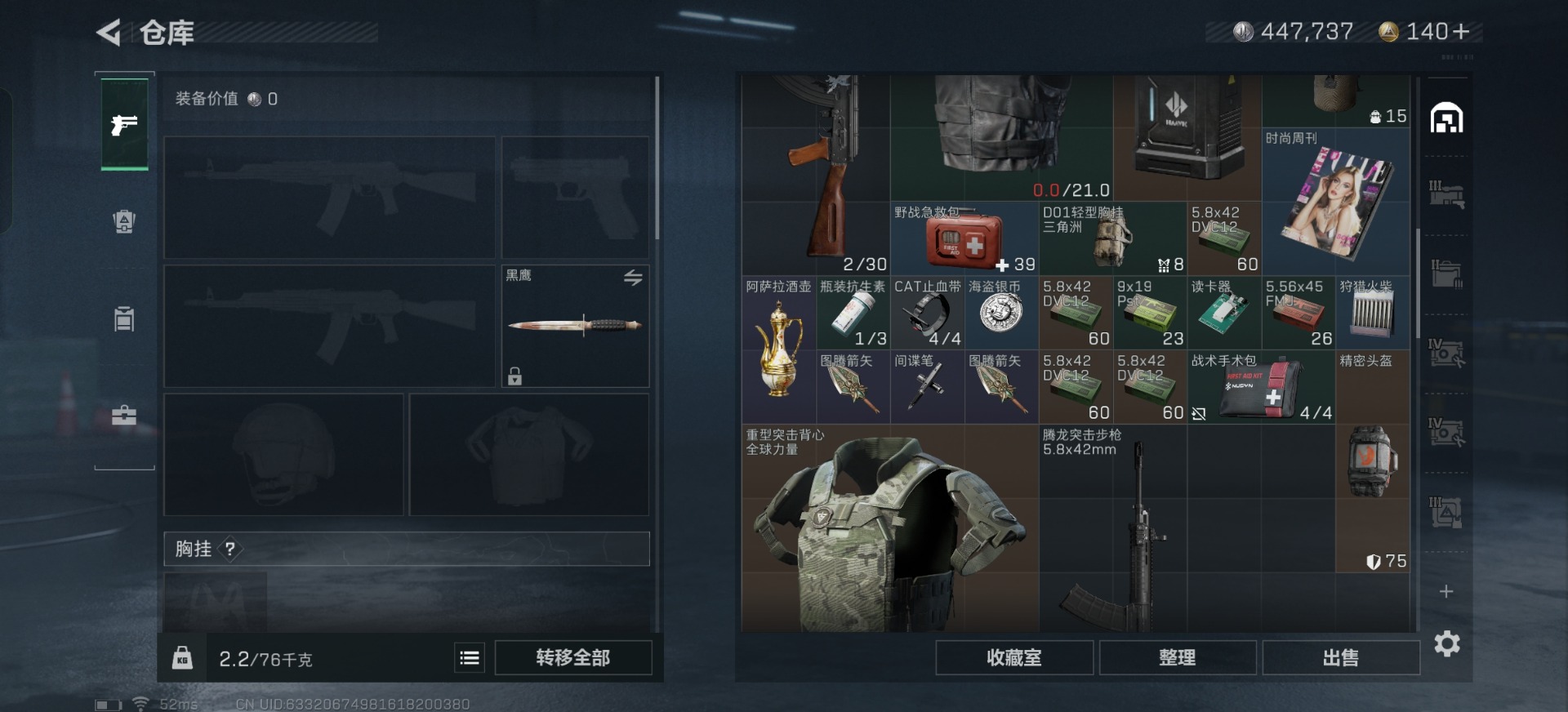 - [11253778]总资产:103.3 2干员外观 1近战传说 12传说枪械 高级安全箱(9.17到期) 可二次 可修改实名 烽火地带段位:钻石 全面战场段位:尉官 哈夫币:7.615 传说武器皮肤:近战-北极星,SCAR-H战斗步枪-电玩高手,SCAR-H战斗步枪-水墨云图,SR-25射手步枪-水墨云图,SCAR-H战斗步枪-铁艺苍穹,AK-12突击步枪-夜鹰,复合弓-黑-天际线,725双管霰弹枪-送葬人-无题密令,QCQ171冲锋枪-北极星,K437突击步枪-北极星,M4A1突击步枪-蚀金玫瑰,CAR-15突击步枪-黑鹰坠落 史诗武器皮肤:QBZ95-1突击步枪-ACE,AUG突击步枪-特勤执行,Vector冲锋枪-红色彗星,PTR-32战斗步枪-ACE,SKS射手步枪-ACE,AUG突击步枪-蝮蛇,M700狙击步枪-蝮蛇,G3战斗步枪-战场英杰,SR-25射手步枪-尖端治疗,AS Val突击步枪-尖端治疗,M700狙击步枪-守夜人,SG552突击步枪-尖端治疗,Ash-12战斗步枪-守夜人,MP5冲锋枪-深海恐惧,SR-3M紧凑突击步枪-荒野求生,勇士冲锋枪-深海恐惧,AKM突击步枪-林中猎手,SVD狙击步枪-暗夜猎手,M16A4突击步枪-竞赛选手,PKM通用机枪-守夜人,SVD狙击步枪-荒野求生,SV-98狙击步枪-林中猎手,M250通用机枪-囚徒,腾龙突击步枪-无垢,MP7冲锋枪-无垢,Vector冲锋枪-阿萨拉文明,SCAR-H战斗步枪-趣味贴纸,M700狙击步枪-竞技风,QSZ92G-风林火山 干员外观:红狼-蚀金玫瑰,骇爪-水墨云图
