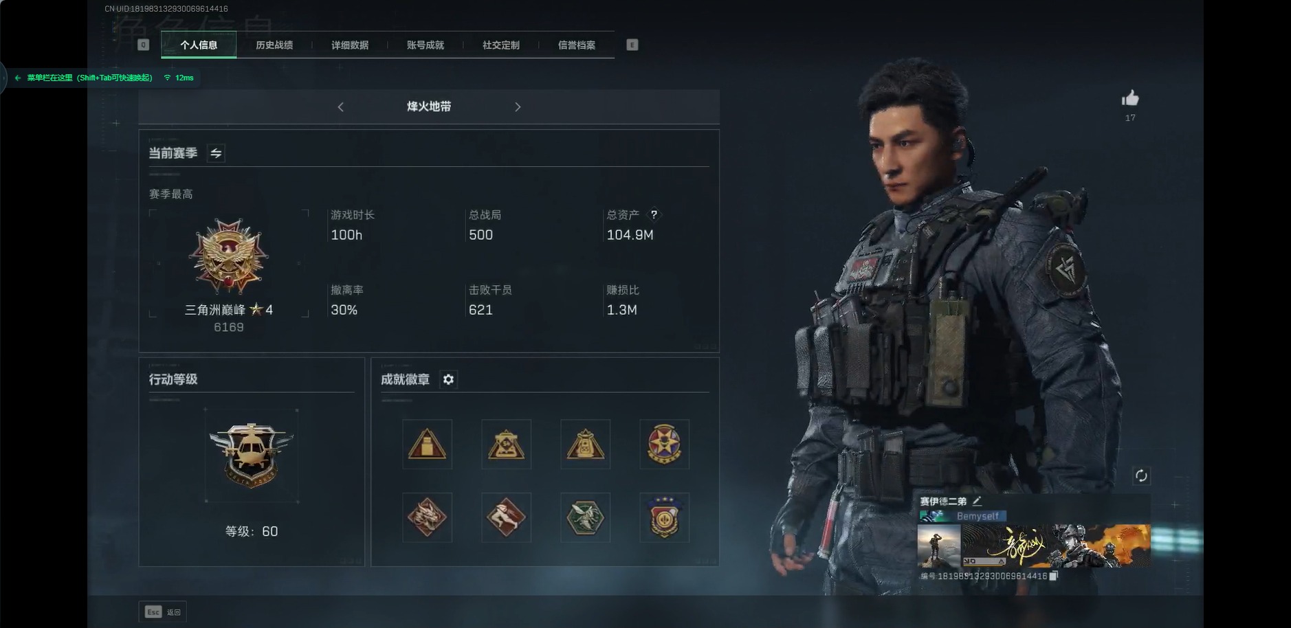 [11294491]可二次 可修改实名 实名:可修改 烽火地带段位:三角洲巅峰 全面战场段位:列兵 顶级安全箱(3×3)9.15号到期 总资产:104.9 哈夫币:299.189 传说武器皮肤:SCAR-H战斗步枪-水墨云图,AK-12突击步枪-夜鹰,SMG45冲锋枪-骑士,复合弓-黑-天际线,CAR-15突击步枪-阿米娅,725双管霰弹枪-送葬人-无题密令 史诗武器皮肤:AUG突击步枪-蝮蛇,M700狙击步枪-蝮蛇,PKM通用机枪-蝮蛇,SR-25射手步枪-尖端治疗,PKM通用机枪-荒野求生,AS Val突击步枪-尖端治疗,M700狙击步枪-守夜人,SG552突击步枪-尖端治疗,Ash-12战斗步枪-守夜人,MP5冲锋枪-深海恐惧,SR-3M紧凑突击步枪-荒野求生,勇士冲锋枪-深海恐惧,SG552突击步枪-深海恐惧,AKM突击步枪-林中猎手,.357左轮-幸运时刻,M16A4突击步枪-竞赛选手,PKM通用机枪-守夜人,SVD狙击步枪-荒野求生,M14射手步枪-禁卫,M1014霰弹枪-林中猎手,SV-98狙击步枪-林中猎手,PTR-32突击步枪-英雄,PSG-1射手步枪-无垢,AS Val突击步枪-典狱官,SV-98狙击步枪-囚徒,SCAR-H战斗步枪-囚徒,MP7冲锋枪-无垢,Vector冲锋枪-阿萨拉文明,PKM通用机枪-英雄,M14射手步枪-黑鹰坠落,M700狙击步枪-竞技风 干员外观:威龙-飞虎
