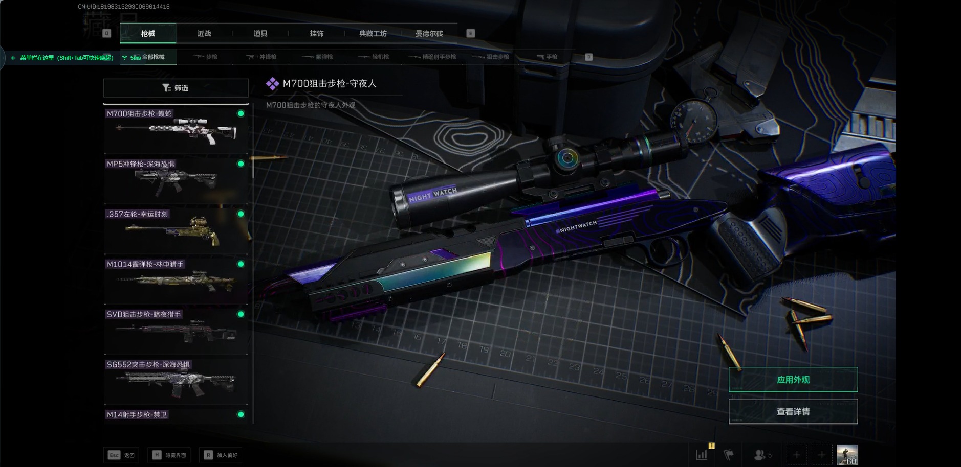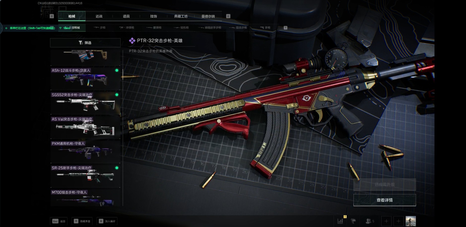 - [11884172]总资产:172.8M 2干员外观 2近战传说 24传说枪械 哈夫币:648.668K 顶级安全箱(3×3)9.15号到期 可二次 可修改实名 优质装备:近战-影锋,近战-北极星,腾龙突击步枪-气象感应(典藏),顶级安全箱(3x3) 烽火地带段位:三角洲巅峰 全面战场段位:无段位 传说武器皮肤:SCAR-H战斗步枪-铁艺苍穹,AK-12突击步枪-夜鹰,SMG45冲锋枪-骑士,K437突击步枪-极速狂飙,G18-飞虎,93R-捞点薯条,AWM狙击步枪-捞点薯条,腾龙突击步枪-捞点薯条,AK-12突击步枪-特斯拉线圈,CAR-15突击步枪-阿米娅,SR-3M紧凑突击步枪-特斯拉线圈,UZI冲锋枪-特斯拉线圈,勇士冲锋枪-能天使-午夜邮差,Vector冲锋枪-能天使-午夜邮差,复合弓-黑-天际线,M4A1突击步枪-阿米娅,M14射手步枪-工业审判,725双管霰弹枪-送葬人-无题密令,K437突击步枪-北极星,QCQ171冲锋枪-北极星,M4A1突击步枪-蚀金玫瑰 史诗武器皮肤:勇士冲锋枪-私人定制(典藏),SMG-45冲锋枪-飓风行动,QBZ95-1突击步枪-ACE,M4A1突击步枪-特勤执行,AUG突击步枪-特勤执行,Vector冲锋枪-红色彗星,PTR-32战斗步枪-ACE,SKS射手步枪-ACE,M700狙击步枪-蝮蛇,PKM通用机枪-蝮蛇,Ash-12战斗步枪-守夜人,M16A4突击步枪-竞赛选手,PKM通用机枪-守夜人,AS Val突击步枪-尖端治疗,M700狙击步枪-守夜人,SG552突击步枪-尖端治疗,SR-25射手步枪-尖端治疗,PKM通用机枪-荒野求生,MP5冲锋枪-深海恐惧,勇士冲锋枪-深海恐惧,SG552突击步枪-深海恐惧,AKM突击步枪-林中猎手,.357左轮-幸运时刻,SR-3M紧凑突击步枪-荒野求生,M1014霰弹枪-林中猎手,SV-98狙击步枪-林中猎手,PTR-32突击步枪-英雄,SVD狙击步枪-荒野求生,AS Val突击步枪-典狱官,M250通用机枪-囚徒,腾龙突击步枪-无垢,MP7冲锋枪-无垢,PSG-1射手步枪-无垢,M14射手步枪-禁卫,QBZ95-1突击步枪-曙光,沙漠之鹰-曙光,Vector冲锋枪-阿萨拉文明,SVD狙击步枪-阿萨拉工艺,S12K霰弹枪-曙光,M7战斗步枪-禁卫 干员外观:红狼-蚀金玫瑰,露娜-黑·天际线