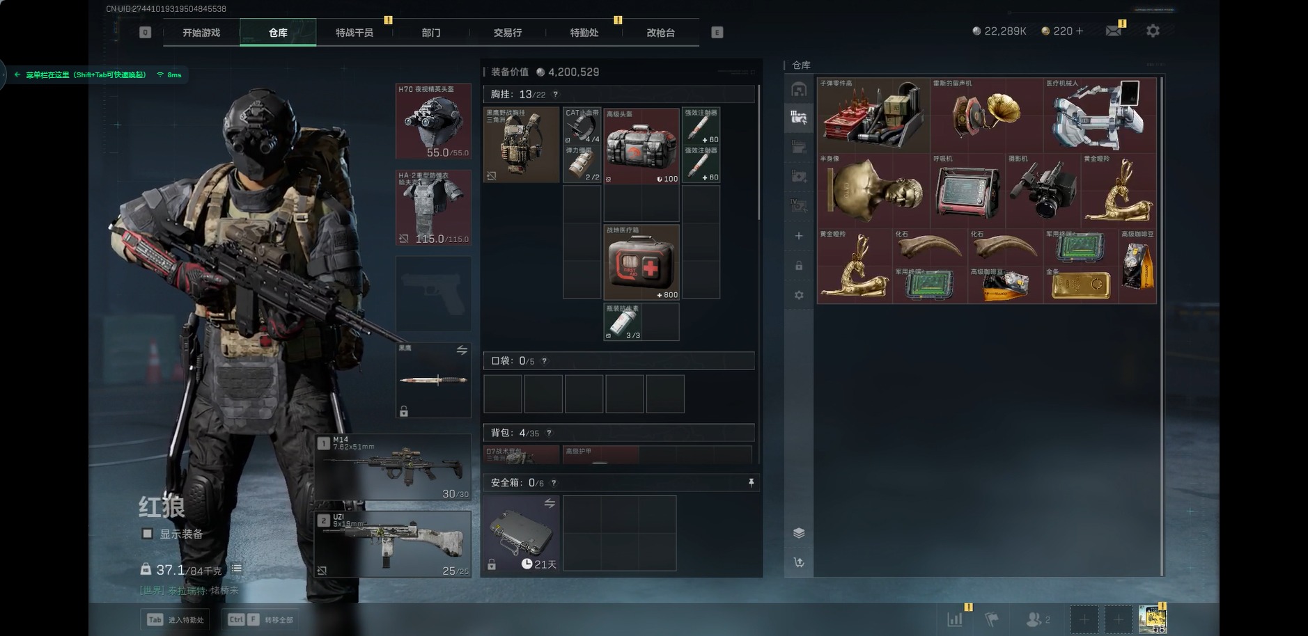 [11297431]总资产:121.2M 6传说枪械 哈夫币:22.289K 顶级安全箱(3×3)9.15号到期 可二次 可修改实名 烽火地带段位:白银 全面战场段位:无段位 传说武器皮肤:CAR-15突击步枪-阿米娅,AWM狙击步枪-捞点薯条,腾龙突击步枪-捞点薯条,93R-捞点薯条,勇士冲锋枪-能天使-午夜邮差,725双管霰弹枪-送葬人-无题密令 史诗武器皮肤:PKM通用机枪-蝮蛇,PKM通用机枪-荒野求生,AKM突击步枪-林中猎手,SR-3M紧凑突击步枪-荒野求生,M1014霰弹枪-林中猎手,SV-98狙击步枪-林中猎手,PTR-32突击步枪-英雄,SVD狙击步枪-荒野求生,SV-98狙击步枪-囚徒,腾龙突击步枪-无垢,MP7冲锋枪-无垢,PSG-1射手步枪-无垢,QBZ95-1突击步枪-曙光