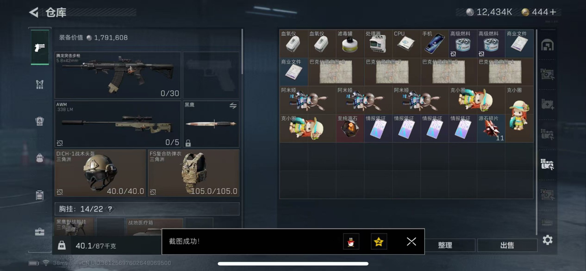 [11254904]总资产:101.7 1干员外观 6传说枪械 高级安全箱(2×3)9.15号到期 可二次 可修改实名 烽火地带段位:黑鹰 全面战场段位:列兵 哈夫币:12.434 传说武器皮肤:复合弓-黑-天际线,AWM狙击步枪-捞点薯条,腾龙突击步枪-捞点薯条,93R-捞点薯条,勇士冲锋枪-能天使-午夜邮差,725双管霰弹枪-送葬人-无题密令 干员外观:蜂医-送葬人·无题密令(S5)