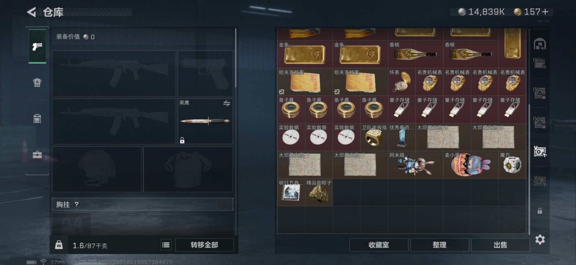- [11601618]总资产:101.7 1干员外观 6传说枪械 高级安全箱(2×3)9.15号到期 可二次 可修改实名 烽火地带段位:黑鹰 全面战场段位:列兵 哈夫币:12.434 传说武器皮肤:复合弓-黑-天际线,AWM狙击步枪-捞点薯条,腾龙突击步枪-捞点薯条,93R-捞点薯条,勇士冲锋枪-能天使-午夜邮差,725双管霰弹枪-送葬人-无题密令 干员外观:蜂医-送葬人·无题密令(S5)